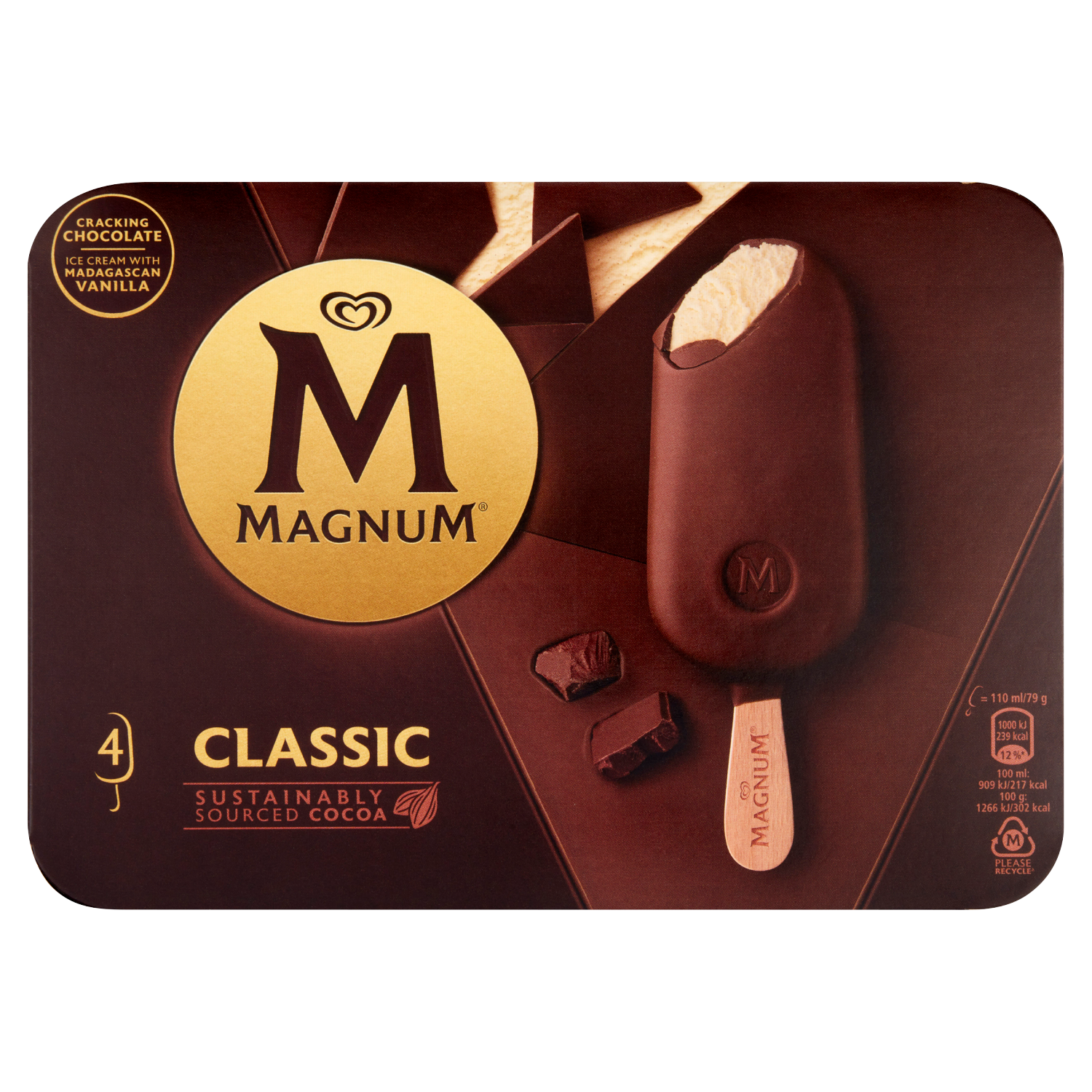 Magnum x la sostenibilità Ogni Magnum è realizzato con cura, con costante a ttenzione ai temi della sostenibilità, utilizzando ingredienti di Alta Qual ità per offrire sempre un'esperienza unica. Vaniglia del Madagascar Il c remoso gelato con estratto di vaniglia del Madagascar, proveniente da fonti gestite responsabilmente, si combina perfettamente con il cioccolato Magnu m. Cioccolato croccante Magnum L'esclusivo cioccolato Magnum nasce da sem i di cacao certificati Rainforest Alliance selezionati e tostati con cura, per garantire un piacere autentico e la croccantezza unica di Magnum ad ogn i morso. Dai semi di cacao al morso I semi di cacao Magnum vengono colti vati e raccolti in modo responsabile presso coltivazioni certificate Rainfo rest Alliance, rispettando l'ambiente e sostenendo i coltivatori locali. Rispettando le risorse forestali Il legno e la carta utilizzati per la pro duzione di stecchi e confezioni esterne derivano da foreste gestite in mani era sostenibile.