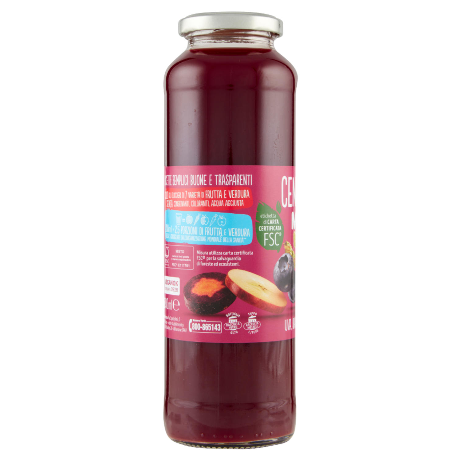 Ricette semplici buone e trasparenti Solo gli zuccheri di 7 varietà di frutta e verdura Senza conservanti, coloranti, acqua aggiunta 200ml = 2,5 Porzioni di frutta e verdura delle 5 consigliate dall'Organizzazione Mondiale della Sanità** **(5 porzioni=400g) Diet, Nutrition and the Prevention of chronic diseases. Report of Joint WHO/FAO Expert Consultation, Geneva 2003.