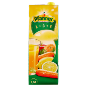 Con le preziose vitamine A+C+E Fresche mele, arance succose, limoni frizzanti e ottime carote caratterizzano il gusto fruttato del succo ACE Pfanner. Dalla squisita combinazione di frutta e verdura scaturisce il gusto inconfondibile di questo cocktail vitaminico. 200 ml di succo ricoprono il 60% del fabbisogno quotidiano di vitamine A, C e E.