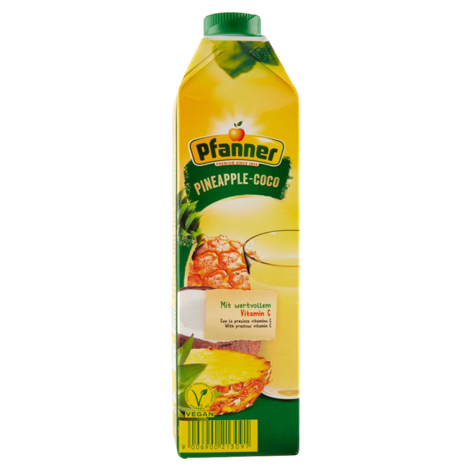 Esistono molte varietà di ananas, da quella leggermente acida a quella estremamente dolce. I migliori ed aromatici ananas sono alla base di questa gustosa bevanda. Arricchita con succo di cocco, la bevanda Ananas-Cocco Pfanner ricorda l'estate e il sole. Bevanda ideale per preparare invitanti cocktail o da gustare pura. Con la preziosa vitamina C