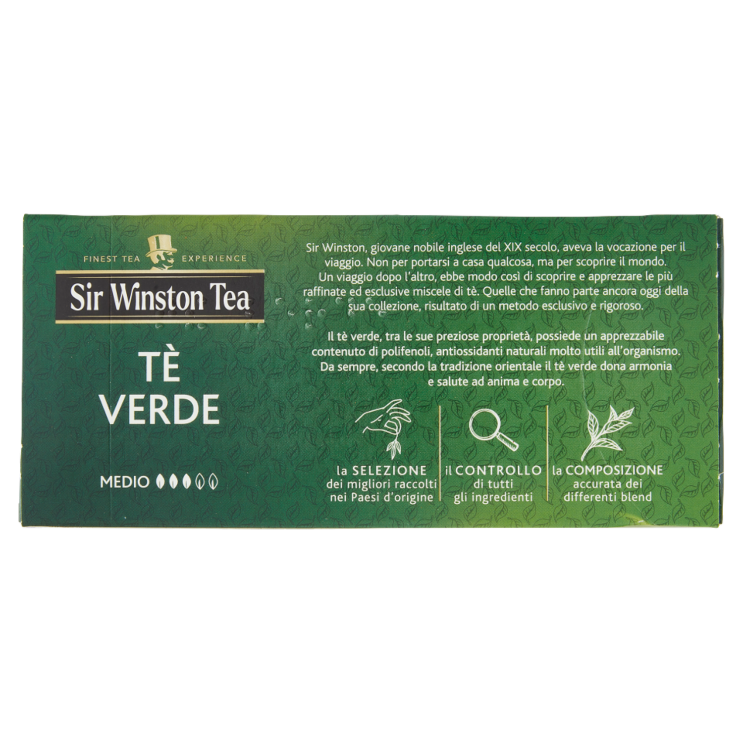 Sir Winston, giovane nobile inglese del XIX secolo, aveva la vocazione per il viaggio. Non per portarsi a casa qualcosa, ma per scoprire il mondo. Un viaggio dopo l'altro, ebbe modo così di scoprire e apprezzare le più raffinate ed esclusive miscele di tè. Quelle che fanno parte ancora oggi della sua collezione, risultato di un metodo esclusivo e rigoroso. la Selezione dei migliori raccolti nei Paesi d'origine - il Controllo di tutti gli ingredienti - la Composizione accurata dei differenti blend