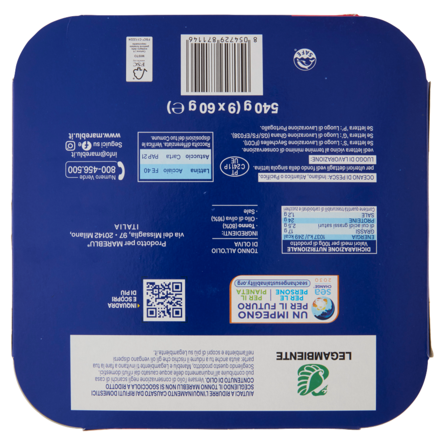 Gusto di sempre - Non si sgocciola Mareblu ha creato per te il tonno "perfetto": Buono e Tenero come sempre, pratico e attento all'ambiente. La ricetta prevede la stessa quantità di tonno rispetto ad una lattina standard da 80g, sale ma meno olio d'oliva. La presenza di meno olio rende il prodotto compatto, ne preserva il gusto e lo rende più pratico poiché non è necessario sgocciolarlo. L'aggiunta di vapore ne garantisce la conservazione. seaChange Legalità e sicurezza sul lavoro Approvvigionamento responsabile Processi di produzione sostenibili Persone e comunità www.seachangesustainability.org Tonno di provenienza FIP FIP: Programma di miglioramento della pesca per il raggiungimento delle più importanti certificazioni di sostenibilità. Per maggiori informazioni vai su: fisheryprogress.org 100% Tracciabilità Scopri tutto sul nostro tonno: vai su mareblu.it