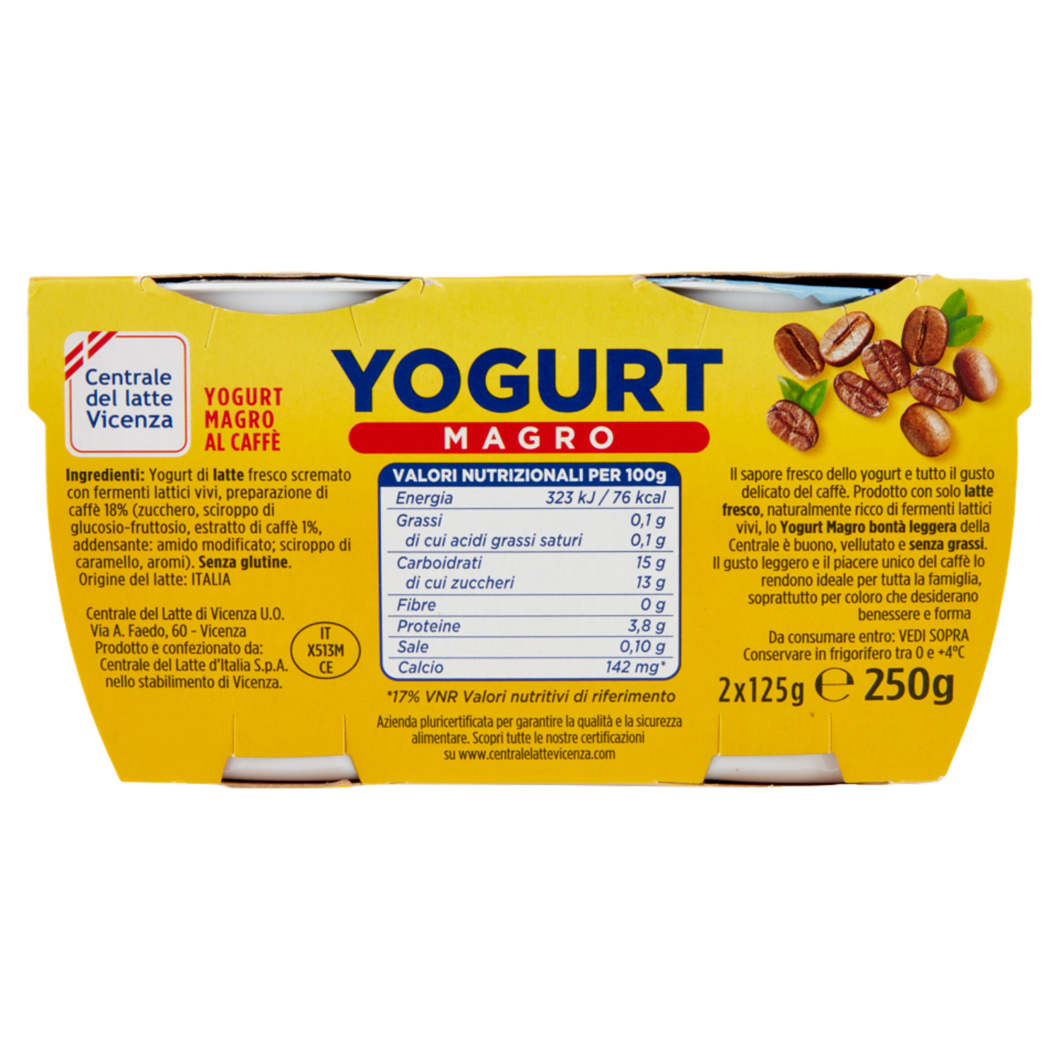 Il sapore fresco dello yogurt e tutto il gusto delicato del caffè. Prodotto con solo latte fresco, naturalmente ricco di fermenti lattici vivi, lo Yogurt Magro bontà leggera della Centrale è buono, vellutato e senza grassi. Il gusto leggero e il piacere unico del caffè lo rendono ideale per tutta la famiglia, soprattutto per coloro che desiderano benessere e forma