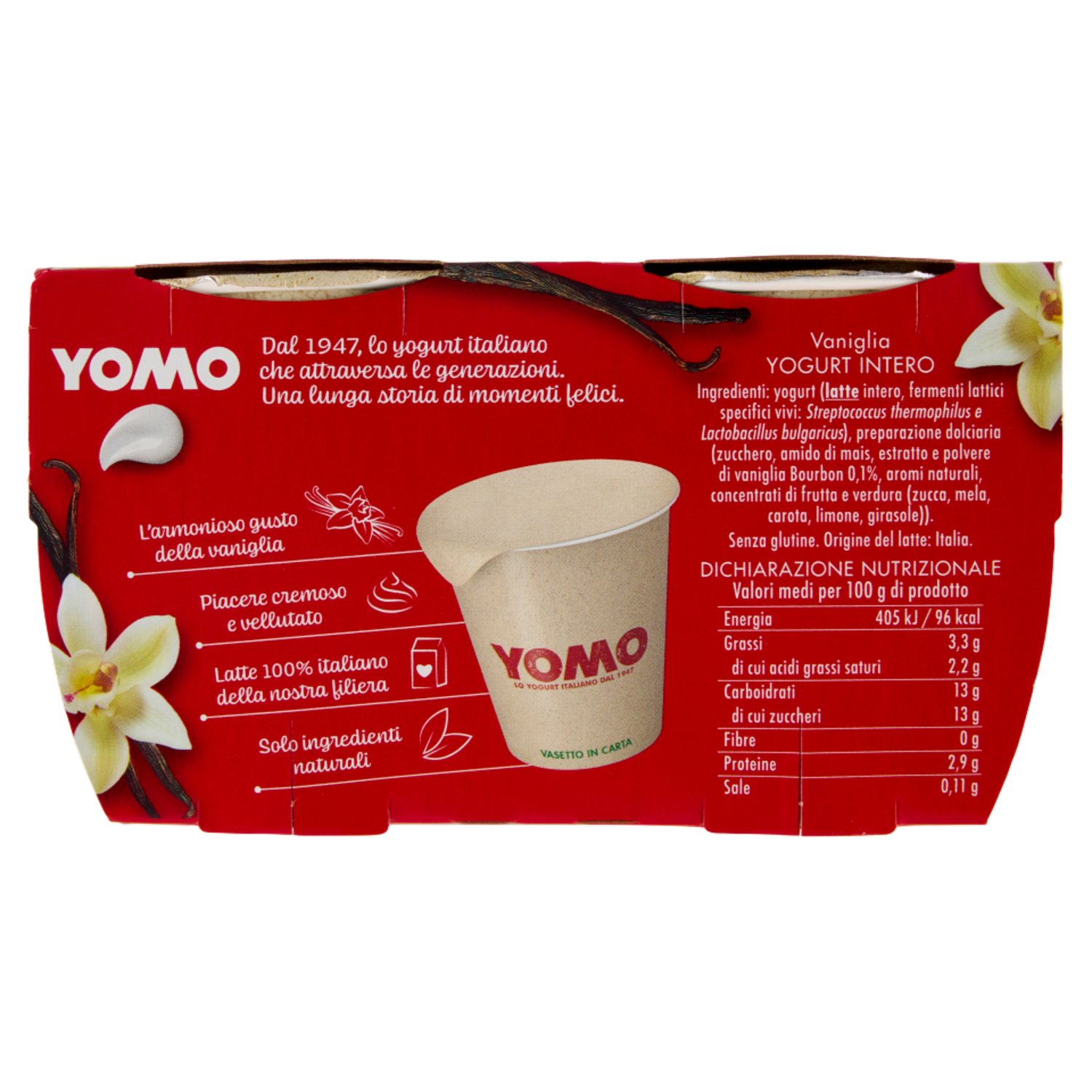 Yomo Vaniglia con il suo gusto inimitabile! Latte italiano di filiera Solo latte italiano della filiera Granarolo e benessere animale certificato in allevamento* *DTP 142 - Cert. CSQA n. 53446 Vasetto in carta Tutti i vasetti Yomo 125g x 2 sono in carta