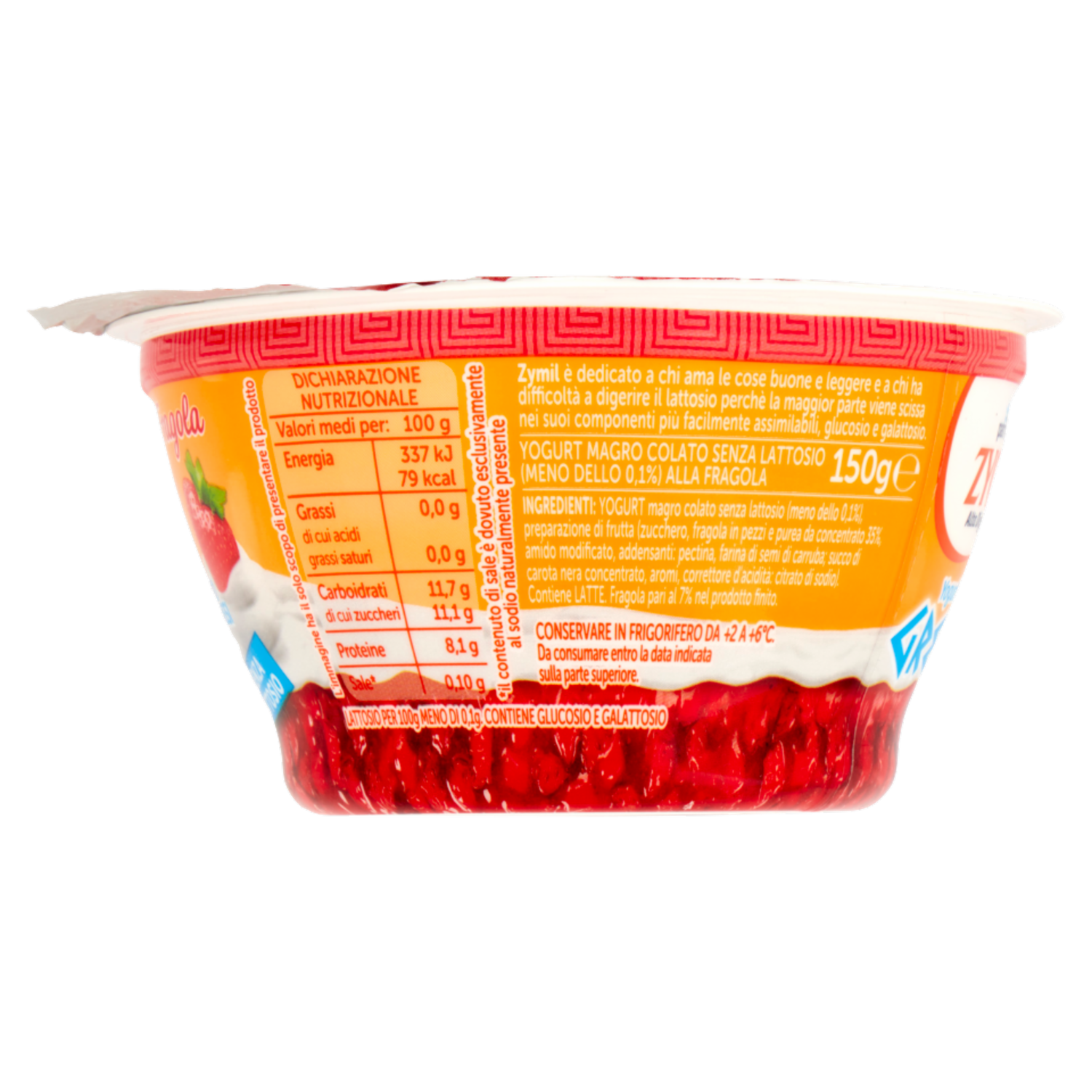 Zymil è dedicato a chi ama le cose buone e leggere e a chi ha difficoltà a digerire il lattosio perchè la maggior parte viene scissa nei suoi componenti più facilmente assimilabili, glucosio e galattosio. Lattosio per 100g meno di 0,1g. Contiene glucosio e galattosio