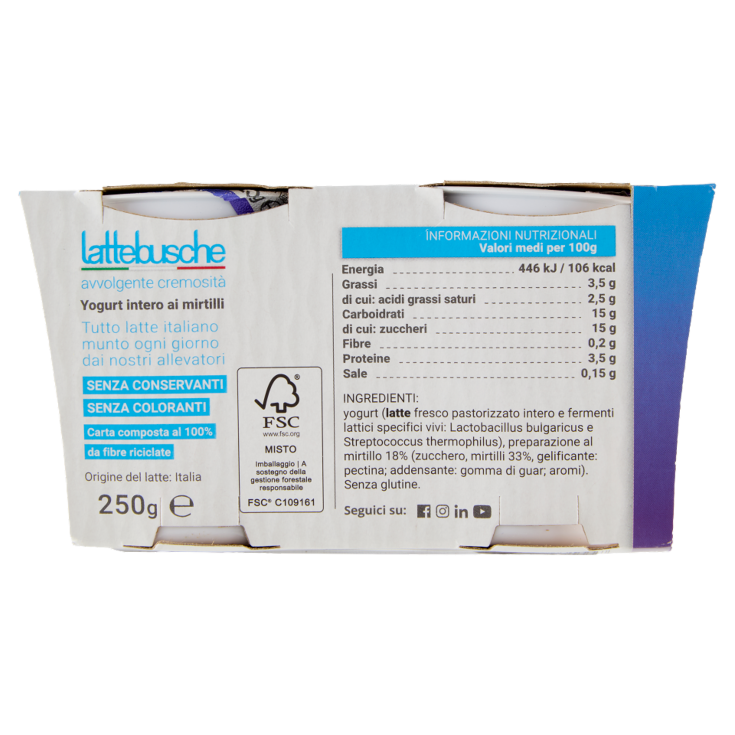 Yogurt (latte fresco pastorizzato intero e fermenti lattici specifici vivi: Lactobacillus bulgaricus e Streptococcus thermophilus)