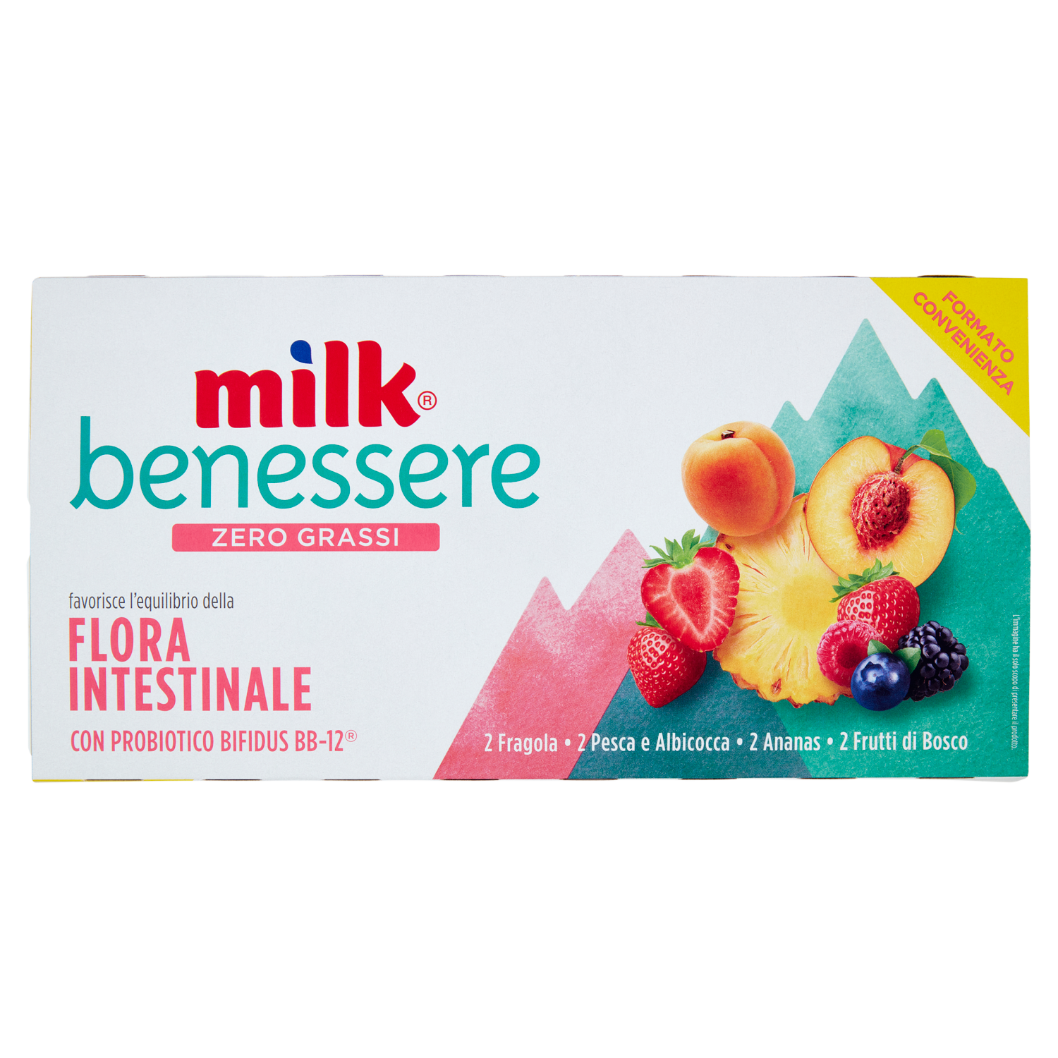Latte scremato fermentato con preparazione alla fragola Latte scremato fermentato con preparazione alla pesca - Albicocca Latte scremato fermentato con preparazione all'ananas Latte scremato fermentato con preparazione ai frutti di bosco