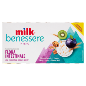 Un vasetto di Milk benessere Flora Intestinale contiene almeno un miliardo di fermenti attivi che favoriscono l'equilibrio della flora intestinale. Si consiglia l'assunzione di 1-2 vasetti al giorno, in abbinamento ad uno stile di vita sano ed un'alimentazione varia ed equilibrata.