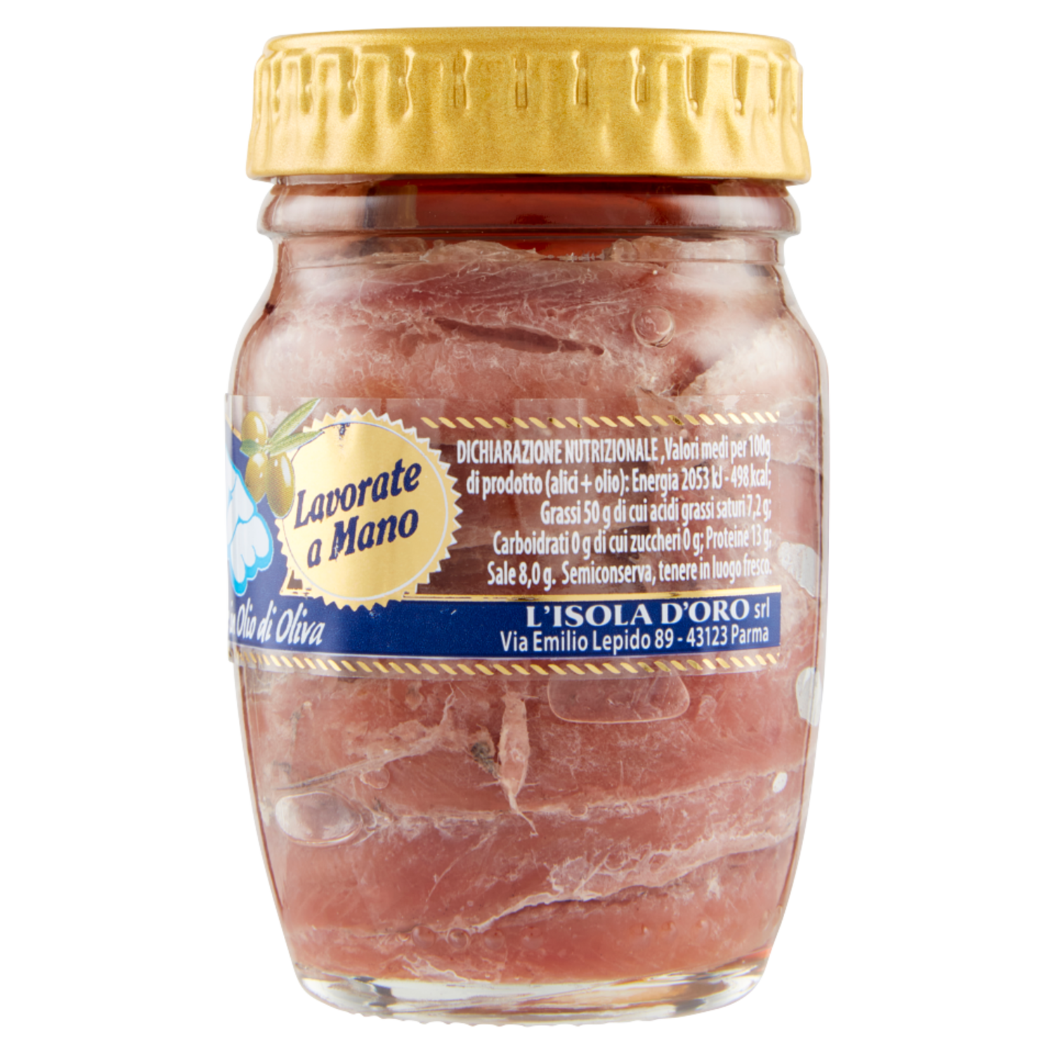 | Valori medi per 100g di prodotto (alici + olio): | |