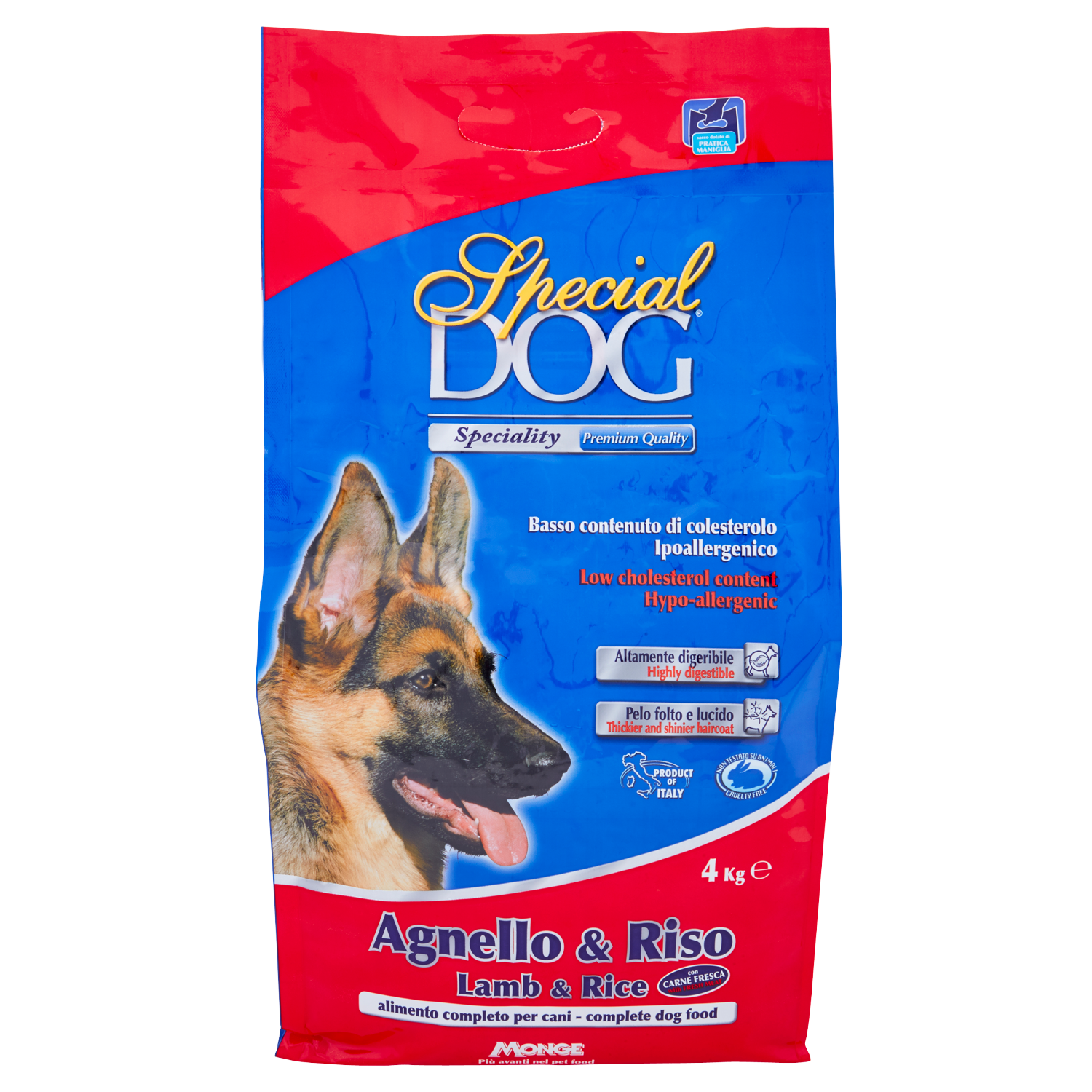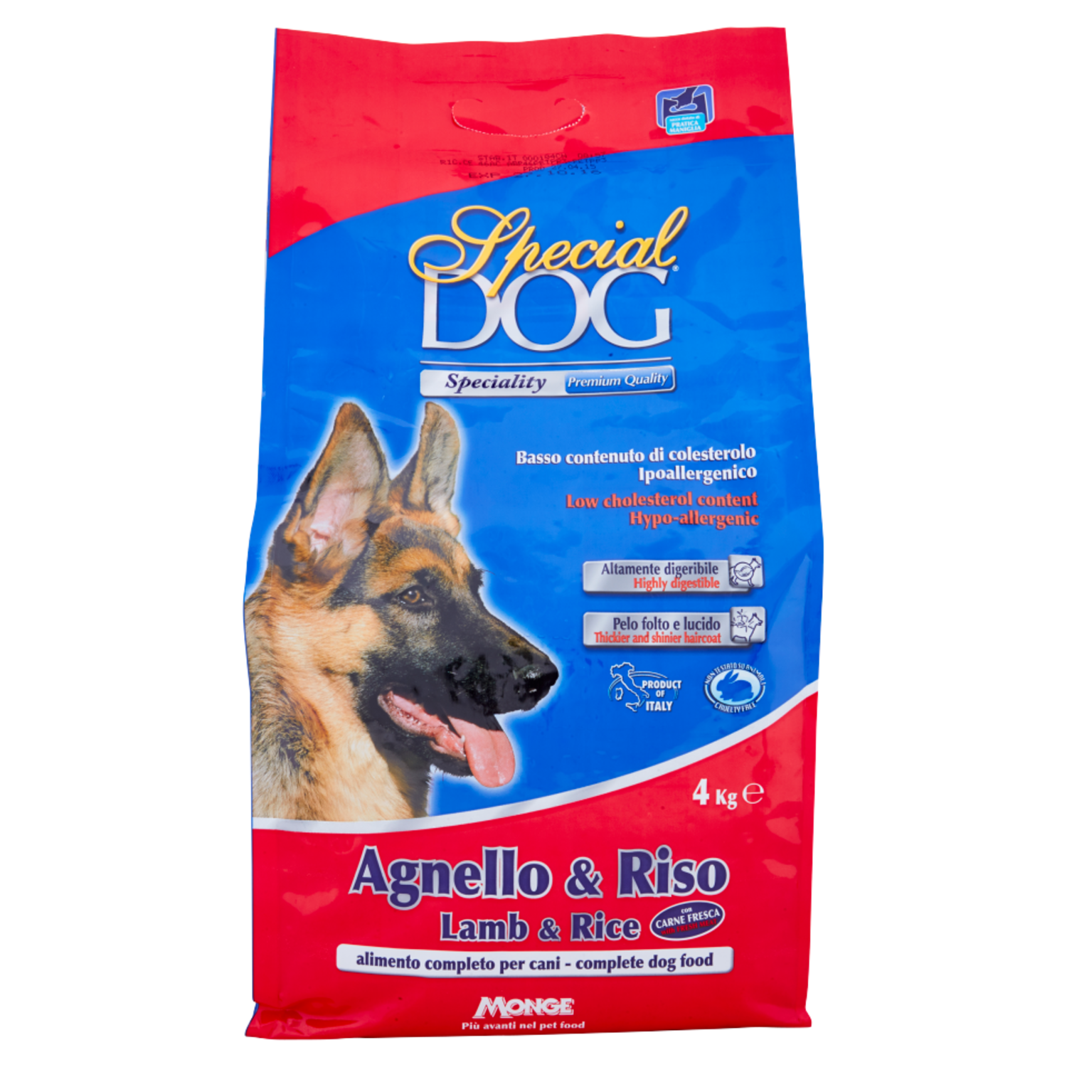 Basso contenuto di colesterolo - Ipoallergenico Alimento completo e bilanciato per cani adulti di tutte le razze che necessitano di alimenti ad alta digeribilità e che non diano problemi intestinali. Fornisce inoltre proteine ad alto valore biologico, come quelle di agnello e carboidrati altamente digeribili come quelli del riso, sottoposto al processo di estrusione. Contiene F.O.S. (frutto-oligo saccaridi) regolatori della flora batterica intestinale e Yucca Schidigera che riduce l'odore delle feci. Garantisce il rapporto ottimale tra gli acidi grassi Omega-3 e Omega-6 per una pelle sempre più giovane.