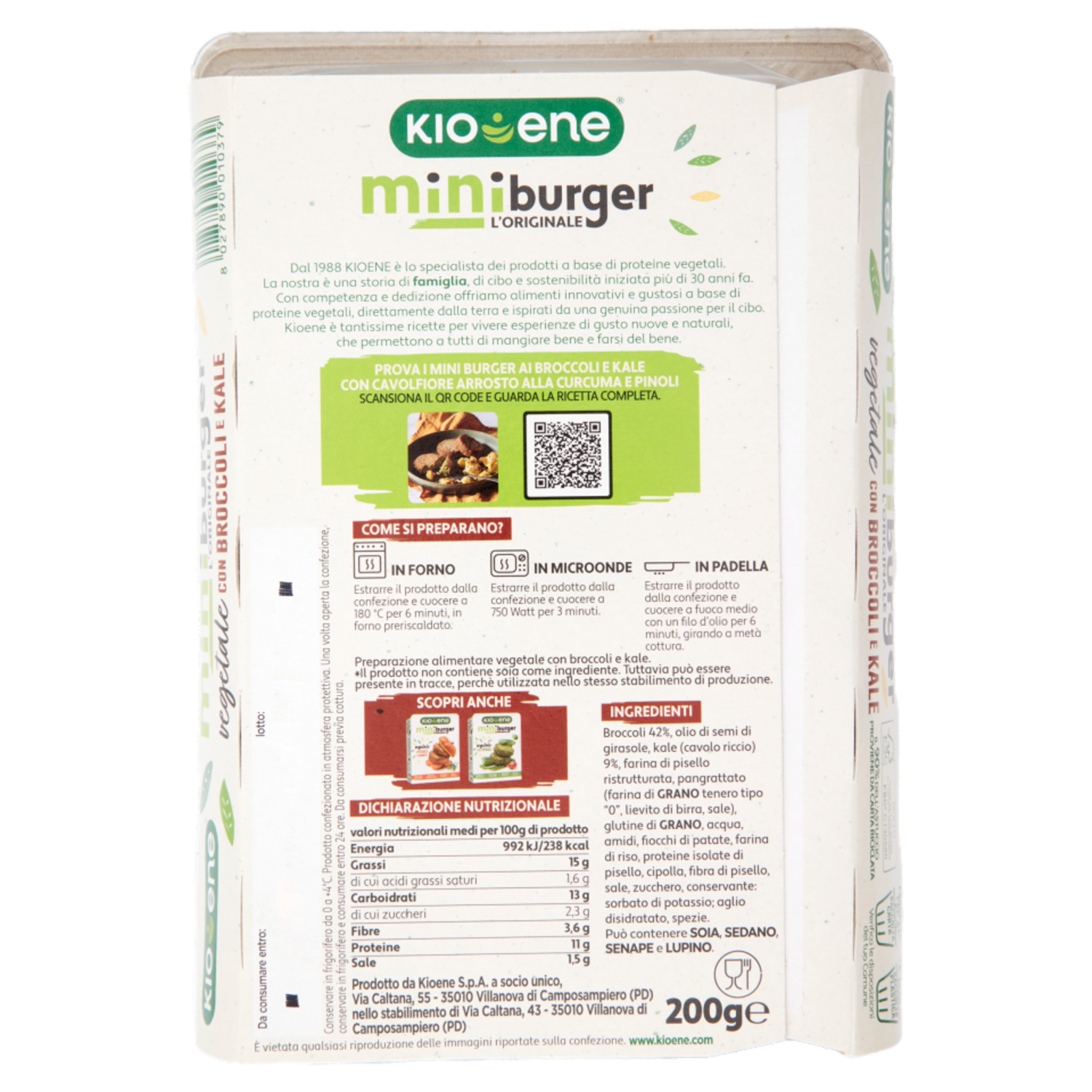 Dal 1988 Kioene è lo specialista dei prodotti a base di proteine vegetali. La nostra è una storia di famiglia, di cibo e sostenibilità iniziata più di 30 anni fa. Con competenza e dedizione offriamo alimenti innovativi e gustosi a base di proteine vegetali, direttamente dalla terra e ispirati da una genuina passione per il cibo. Kioene è tantissime ricette per vivere esperienze di gusto nuove e naturali, che permettono a tutti di mangiare bene e farsi del bene. Prova i mini burger ai broccoli e kale con cavolfiore arrosto alla curcuma e pinoli Scansiona il QR code e guarda la ricetta completa.