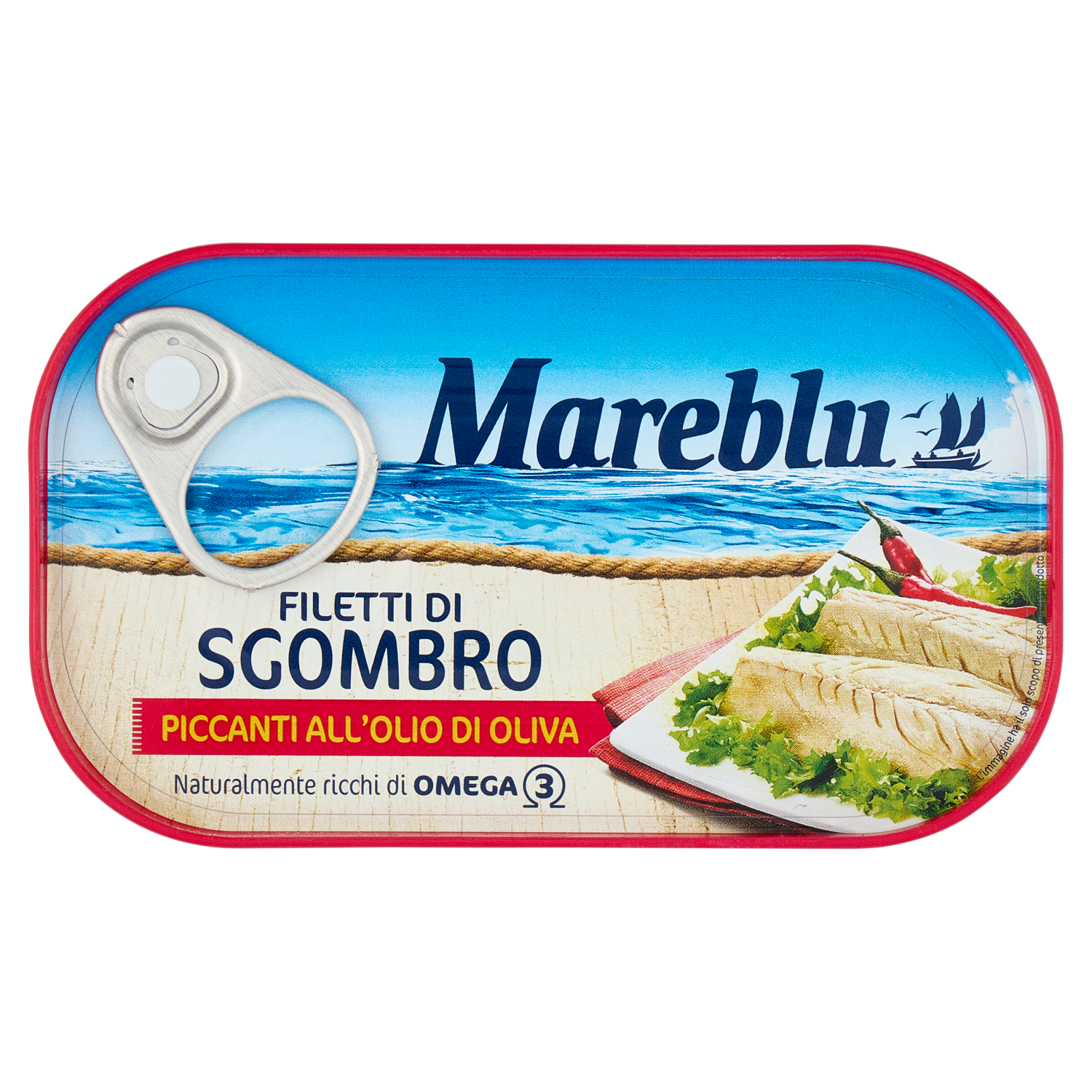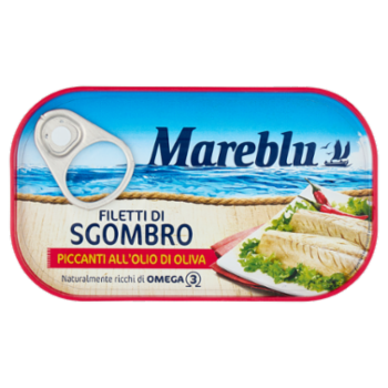Mareblu Piacere di conoscerci 100% Tracciabilità Scopri tutto sul nostro sgombro: vai su mareblu.it - Selezioniamo solo sgombri qualità Scomber Scombrus - Gli sgombri sono un pesce naturalmente ricco di Omega 3