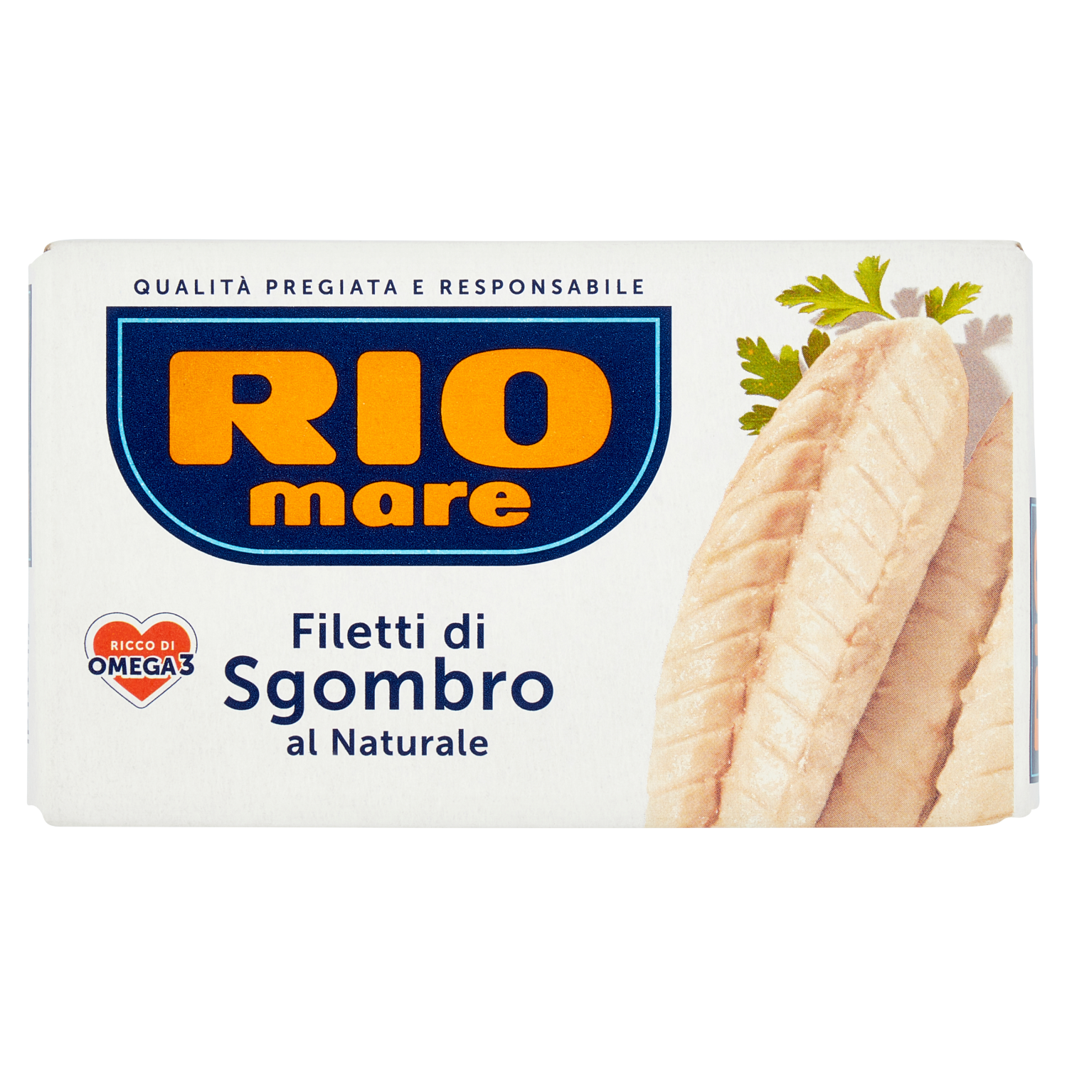 Prova il gusto autentico dei Filetti di Sgombro Rio Mare al Naturale: filetti di prima qualità, integri e senza lische, accuratamente selezionati e cotti delicatamente. Gustosi e nutrienti, i Filetti di Sgombro Rio Mare ti offrono le migliori qualità del pesce azzurro, sono ricchi di proteine nobili e di omega 3 (EPA+DHA), acidi grassi essenziali che con 250 mg al giorno contribuiscono alla normale funzione cardiaca in un'alimentazione varia ed equilibrata. Ricco di: omega 3, proteine, vitamina B12, niacina, vitamina D, selenio, fosforo.