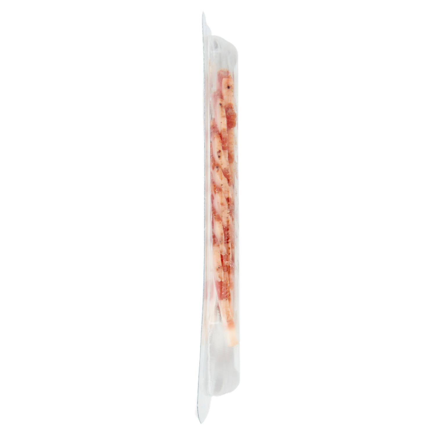 Il vero sapore del bacon americano, con affettatura classica ed affumicatura con legno di faggio per una cottura crispy.