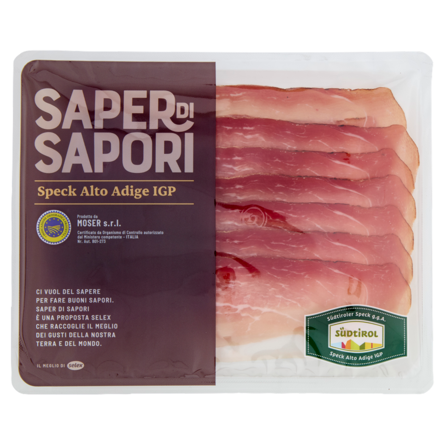 Indicazione Geografica Protetta - Speck Alto Adige I.G.P. - Certificato da organismo di controllo autorizzato dal Ministero delle Politiche Agricole, Alimentari e Forestali nr. Aut. B01-122