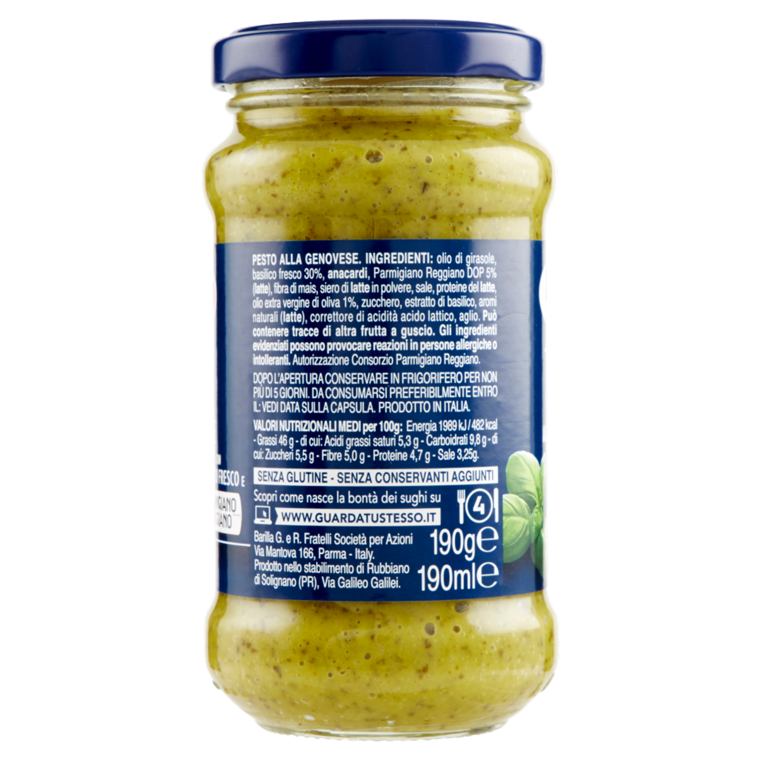 Barilla G. e R. Fratelli Società per Azioni Via Mantova 166 Parma Italy Prodotto nello stabilimento di Rubbiano di Solignano (PR) Via Galileo Galilei