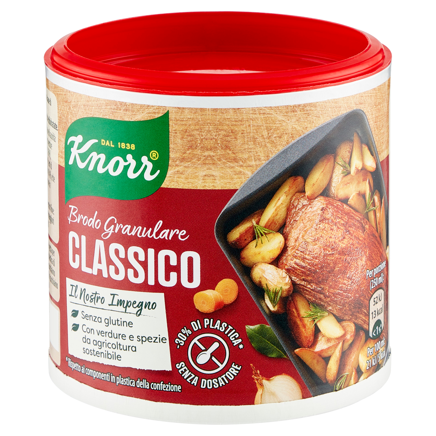 Senza lattosio Con pochi grassi Abbiamo rimosso il dosatore usa e getta per ridurre del 30 % le componenti in plastica di questa confezione. Puoi usare un cucchiaino per dosare Brodo Granulare Knorr! Un cucchiaino colmo di Granulare Knorr = 1 Dado