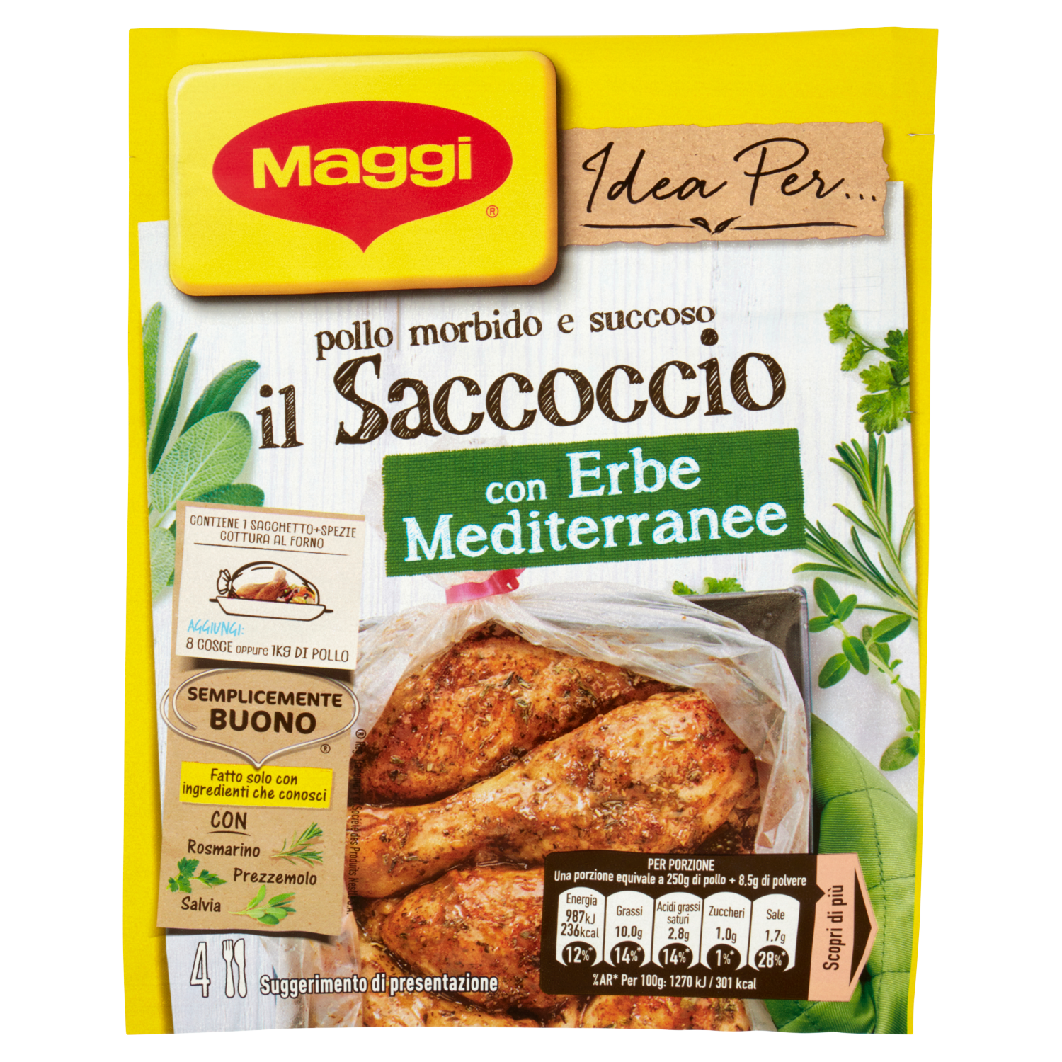 - Idea Per... pollo morbido e succoso - Contiene 1 sacchetto+spezie - Cottura al forno - Aggiungi: 8 cosce oppure 1kg di pollo - Semplicemente buono - Fatto solo con ingredienti che conosci - Con Rosmarino, Prezzemolo, Salvia - 4 Porzioni