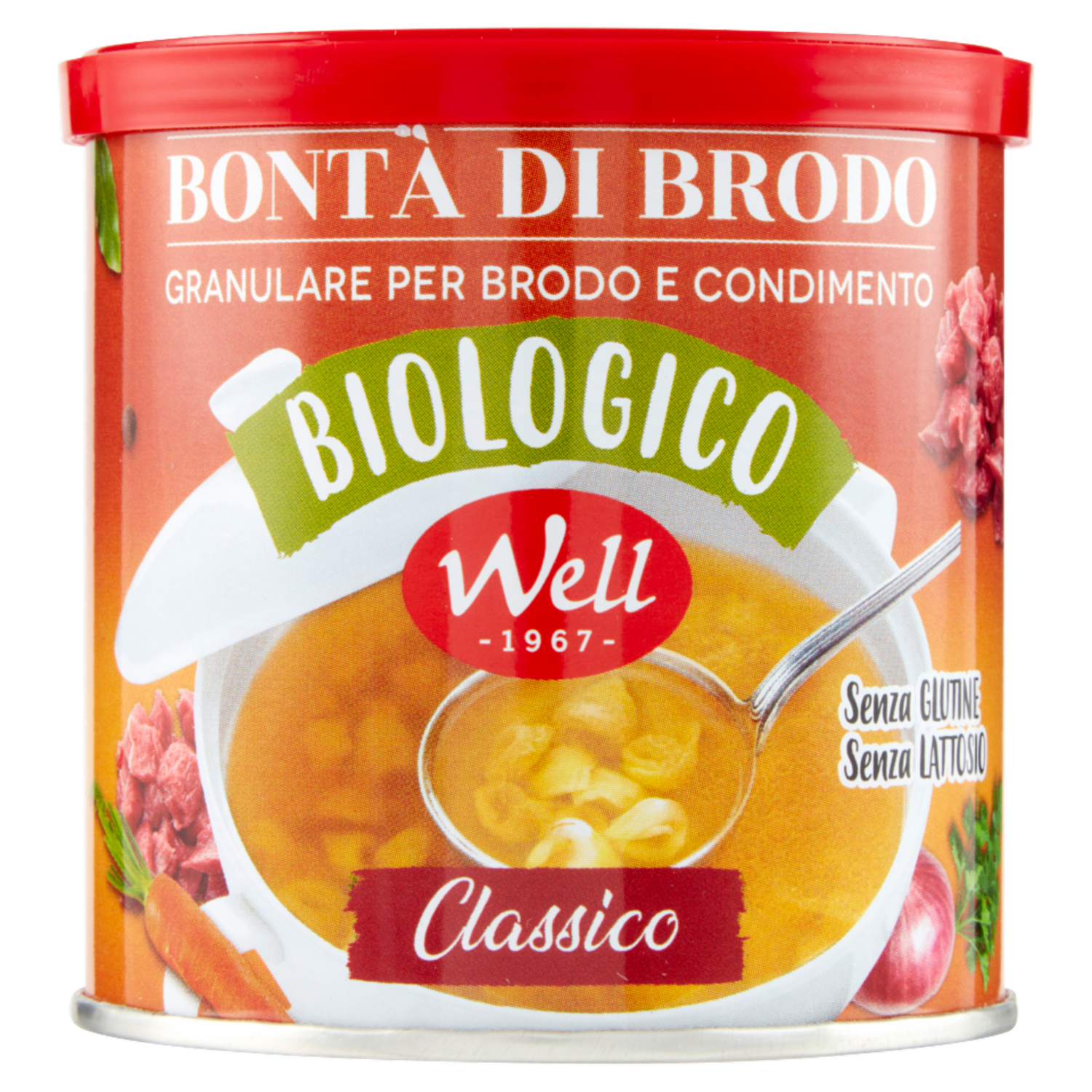 Bontà di brodo granulare classico - Biologico Tutto il gusto del buon brodo in carne, magro, saporito ed armonioso, con la naturalezza e la qualità degli ingredienti biologici. Senza glutine, senza lattosio e senza glutammato aggiunto. È ideale per preparare brodi, zuppe, risotti e minestre speciali. Eccellente come insaporitore: usato in sostituzione totale o parziale del sale, prima o durante la cottura, armonizza ed arricchisce il sapore di tutte le preparazioni come sughi, salse, secondi piatti e contorni in genere.