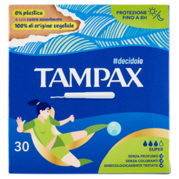 Facile da inserire e igienico anche fuori casa grazie al pratico applicatore Comfort Applicatore con punta arrotondata. Facilità di utilizzo Tampone con presa antiscivolo. Sicurezza Tampone con gonna protettiva. Sapevi che puoi indossare Tampax: Quando fai sport Libera di muoverti come vuoi, sempre. Con il costume Sicuro e discreto anche in acqua. Se sei molto giovane Puoi usarlo anche prima... della prima volta! In tutte le occasioni Pronto all'uso e igienico anche fuori casa. #decidoio Scelgo Tampax per sentirmi libera e protetta, mi piacerebbe che ogni mia scelta aiutasse a rendere il mondo un posto migliore.
