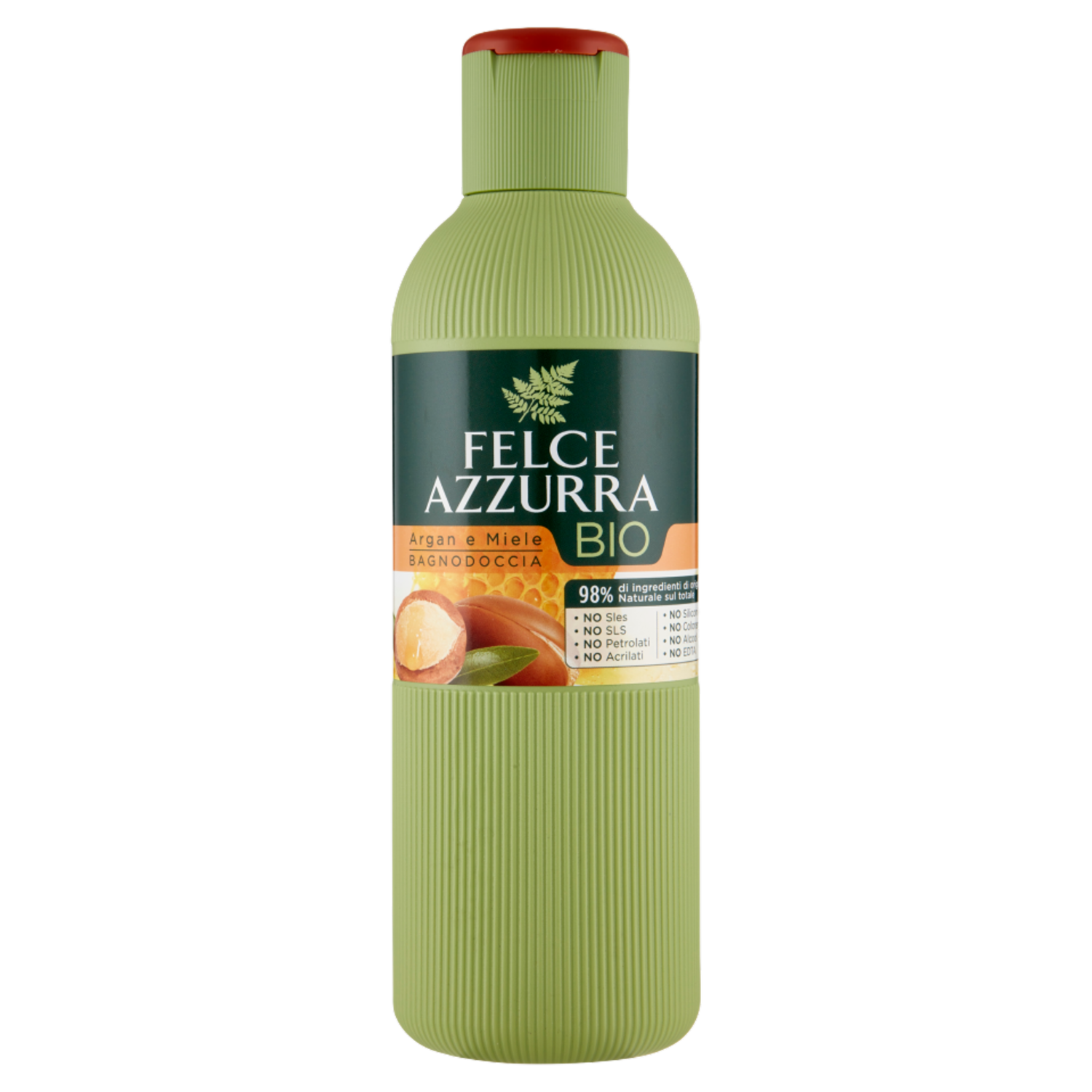 Felce Azzurra Bagnodoccia Argan e Miele Scopri il nuovo bagno Felce Azzurra Bio Argan e Miele. La sua formula, sviluppata secondo i più alti standard della cosmesi biologica, è delicata sulla pelle e ideale per l'uso quotidiano. Le proprietà nutrienti dell'olio di Argan si uniscono alle proprietà addolcenti del miele per un piacere avvolgente. Dermatologicamente testato Profumo 100% di origine naturale Nickel Cromo Cobalto Tested - Testato <1 PPM No OGM Flacone 100% plastica riciclata