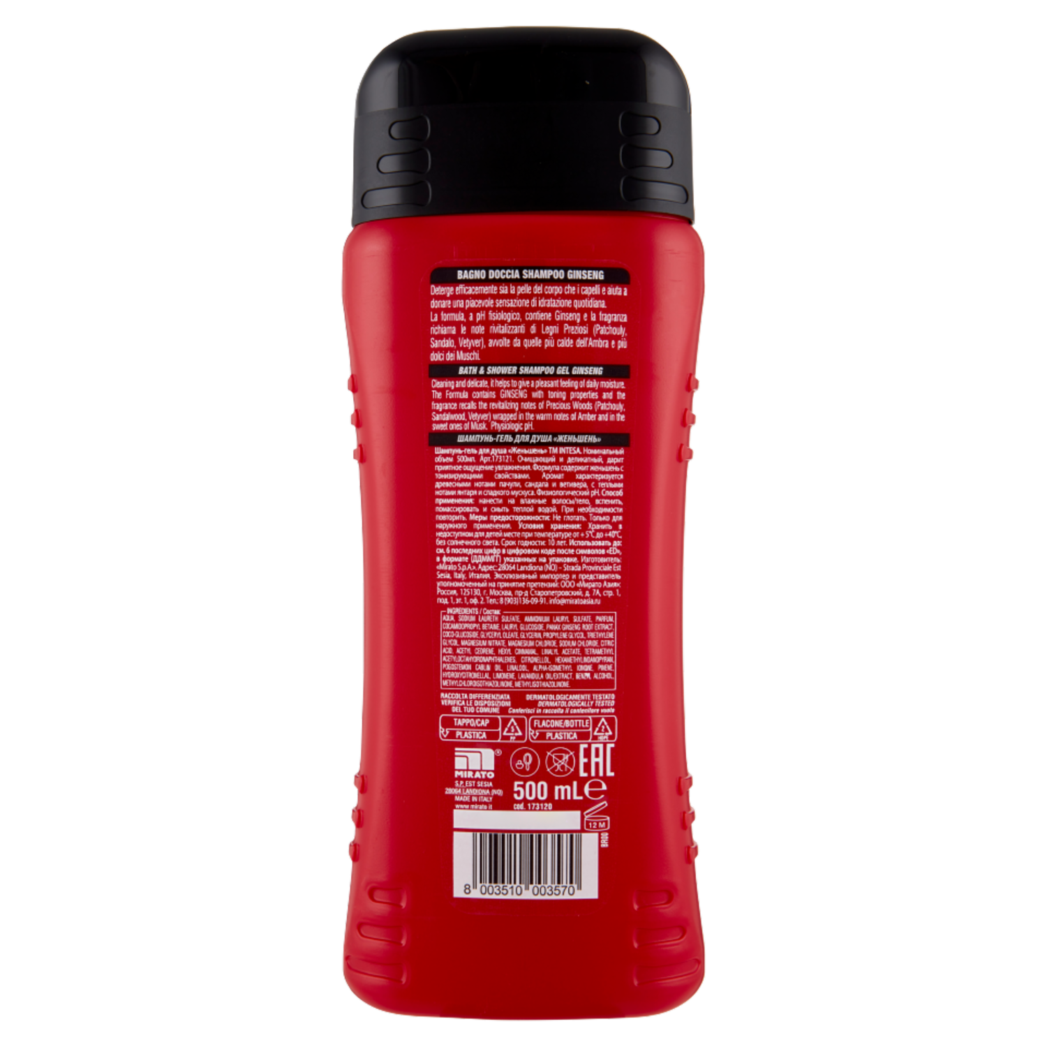 Bagno doccia shampoo Ginseng Deterge efficacemente sia la pelle del corpo che i capelli e aiuta a donare una piacevole sensazione di idratazione quotidiana. La formula, a pH fisiologico, contiene Ginseng e la fragranza richiama le note rivitalizzanti di Legni Preziosi (Patchouly, Sandalo, Vetyver), avvolte da quelle più calde dell'Ambra e più dolci dei Muschi. Dermatologicamente testato