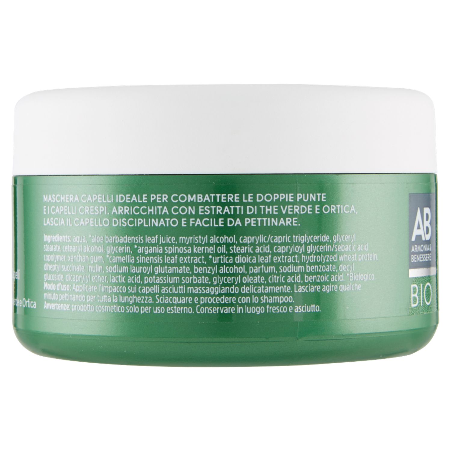 Maschera capelli ideale per combattere le doppie punte e i capelli crespi. Arricchita con estratti di the verde e ortica, lascia il capello disciplinato e facile da pettinare.
