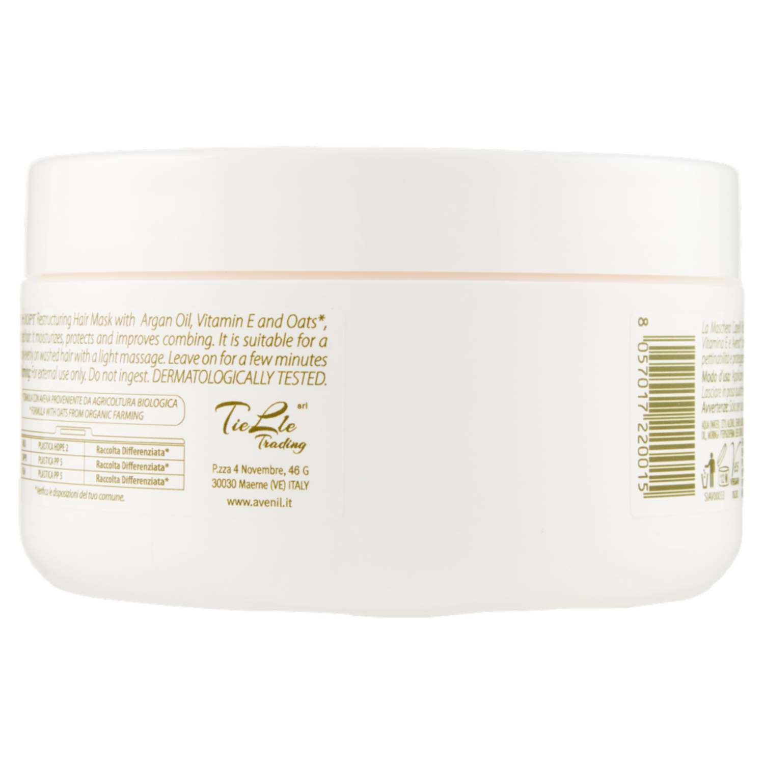 - Senza paraffina - Delicata - Testata per il nichel La Maschera Capelli Ristrutturante Avenil Pure & Soft con Olio di Argan, Vitamina E e Avena*, dona nuova vita ai capelli sfibrati, nutrendoli, migliorandone la pettinabilità e proteggendoli più a lungo. È indicata per un uso frequente. * Formula con avena proveniente da agricoltura biologica Dermatologicamente testata.