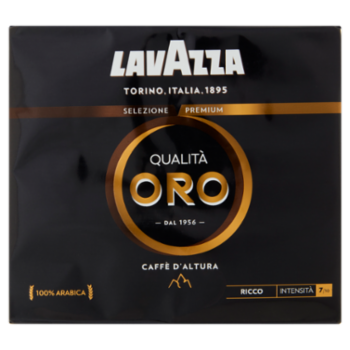 Qualità Oro Dal 1956 Ricco e vellutato. Qualità Oro è l'espressione dell'arte di Lavazza nel miscelare caffè diversi ed eccezionali. Sui fertili terreni di montagna crescono le varietà più pregiate di Arabica che si uniscono per creare un caffè con carattere e personalità. Ogni fase del processo produttivo è curata nei minimi dettagli per rendere unica l'esperienza di gusto. Tostatura: media Intensità: 7 su 10 Altitudine: fino a 2.000m Scopri anche la variante Qualità Oro Sinfonia Perfetta Il piacere di Qualità Oro anche in capsule A Modo Mio