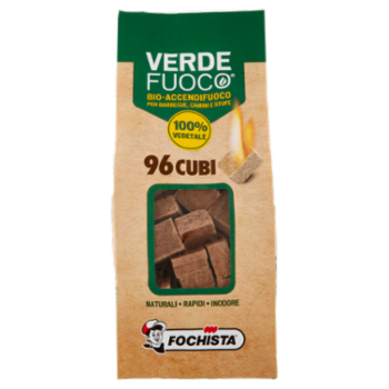 Accendifuoco in fibra di legno pressato arricchito con oli vegetali. Non fa fumo e non lascia cattivi odori. Non inquina. Si conserva a lungo perché non evapora. È sufficiente accendere pochi cubi e porli tra la carbonella o la legna, e in una decina di minuti si accende facilmente il barbecue, la stufa o il caminetto.
