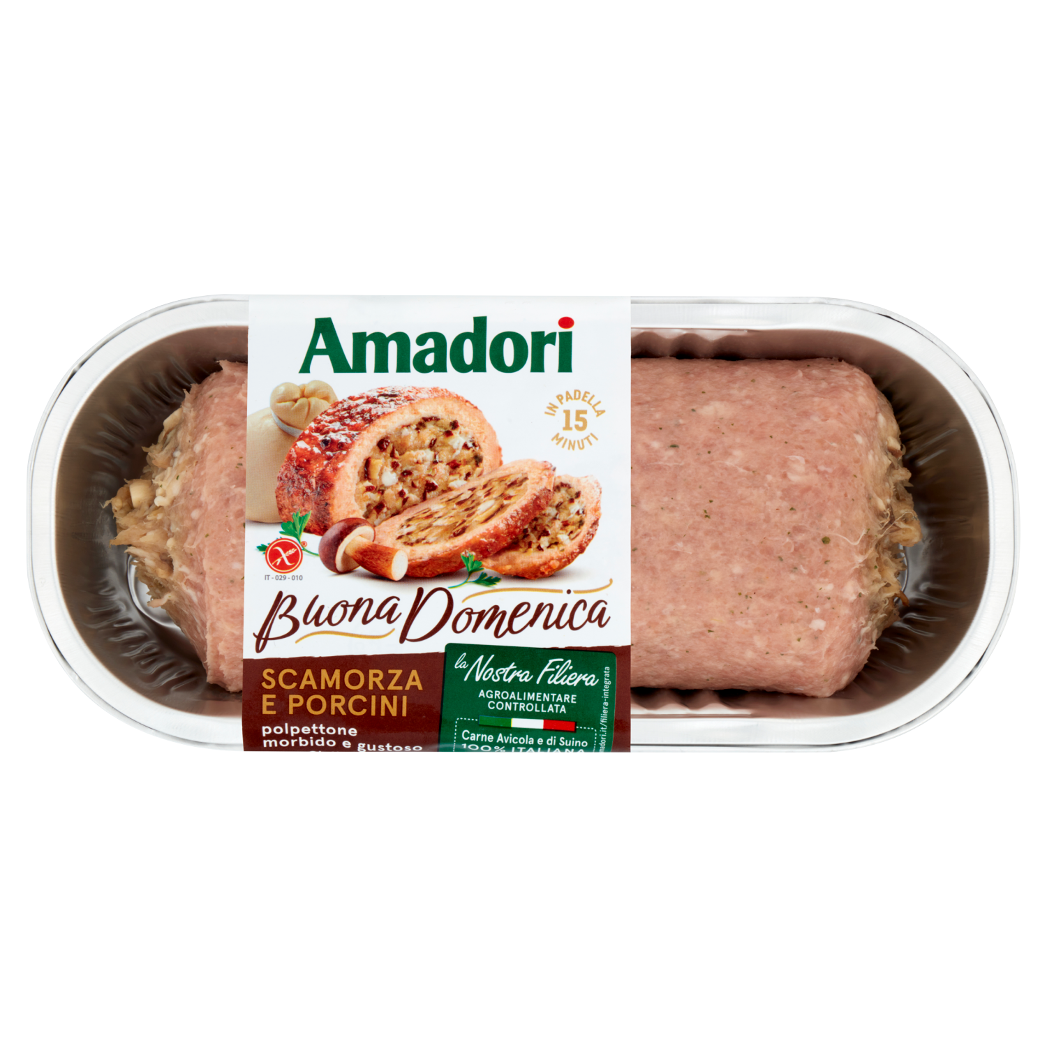 Preparazione a base di carne di pollame fresca con carne di suino, funghi porcini e scamorza affumicata