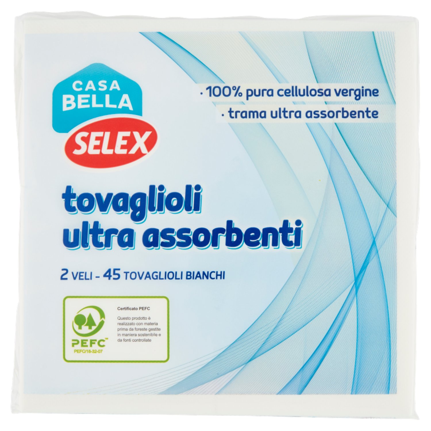 Tovaglioli micro goffrati Casa Bella Selex in pura cellulosa vergine, resistenti ed ultra assorbenti.
