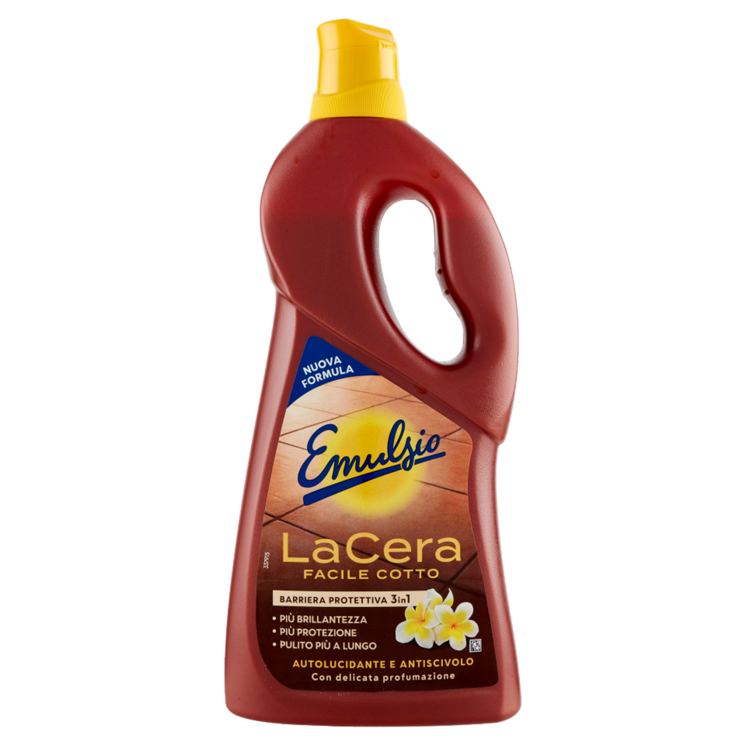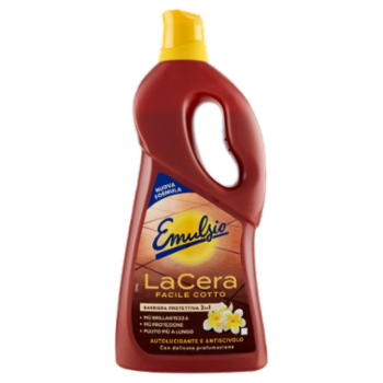 Emulsio, l'originale cera italiana dal 1952, da oggi con una nuova formula professionale Barriera 3in1 per dare al tuo cotto ancora più brillantezza e protezione dai graffi e far durare il pulito più a lungo. La Cera Emuslio Facile autolucidante e antiscivolo è ancora più semplice e veloce da applicare senza lasciare striature e aloni. Senza Lucidatrice
