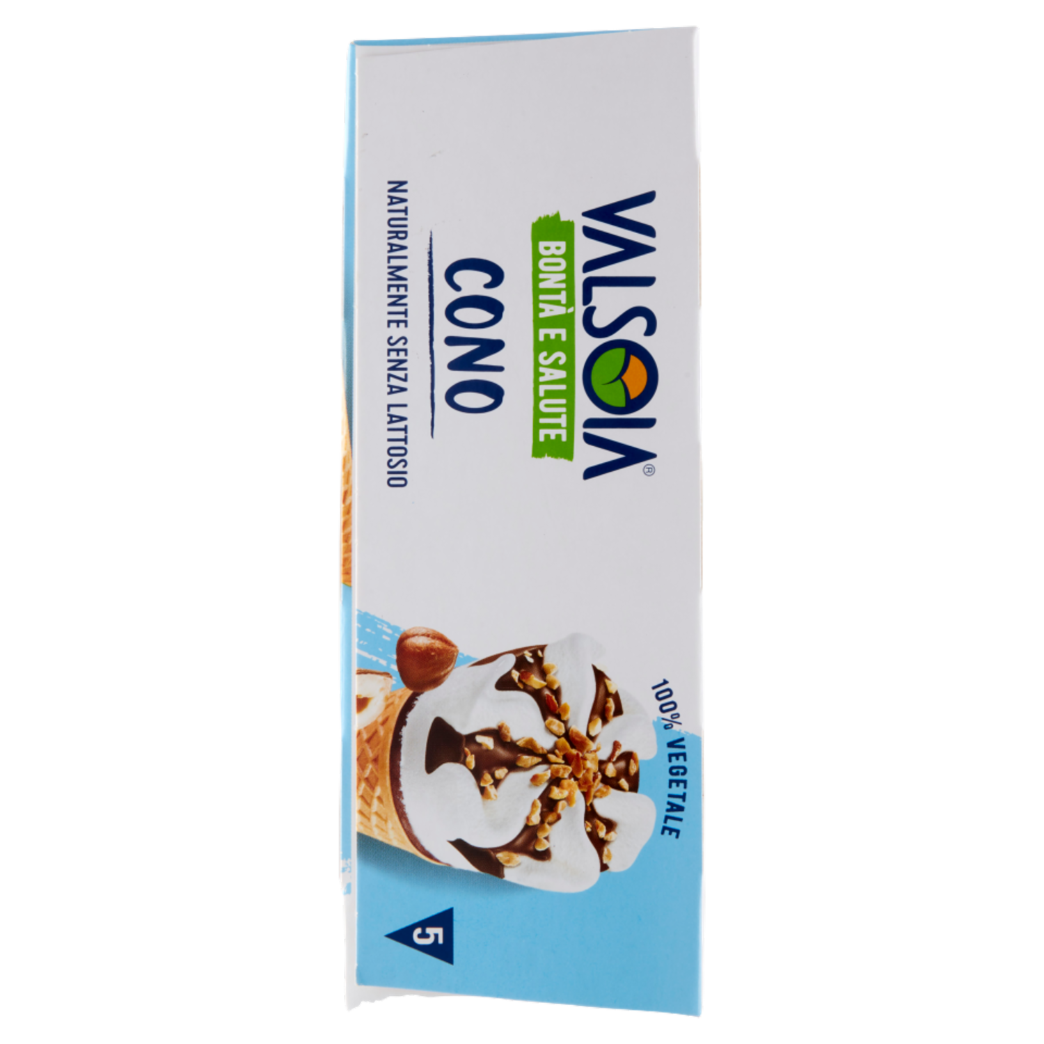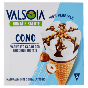 Cremoso gelato Variegatura di cacao Nocciole tostate Nell'ambito di una dieta varia ed equilibrata e di uno stile di vita sano, la vitamina B12 contribuisce al normale metabolismo energetico. Un cono da 75 g fornisce il 15% della quantità giornaliera da assumere per avere l'effetto benefico. La confezione contiene 5 coni. Soia non OGM per informazioni vedi www.valsoia.it
