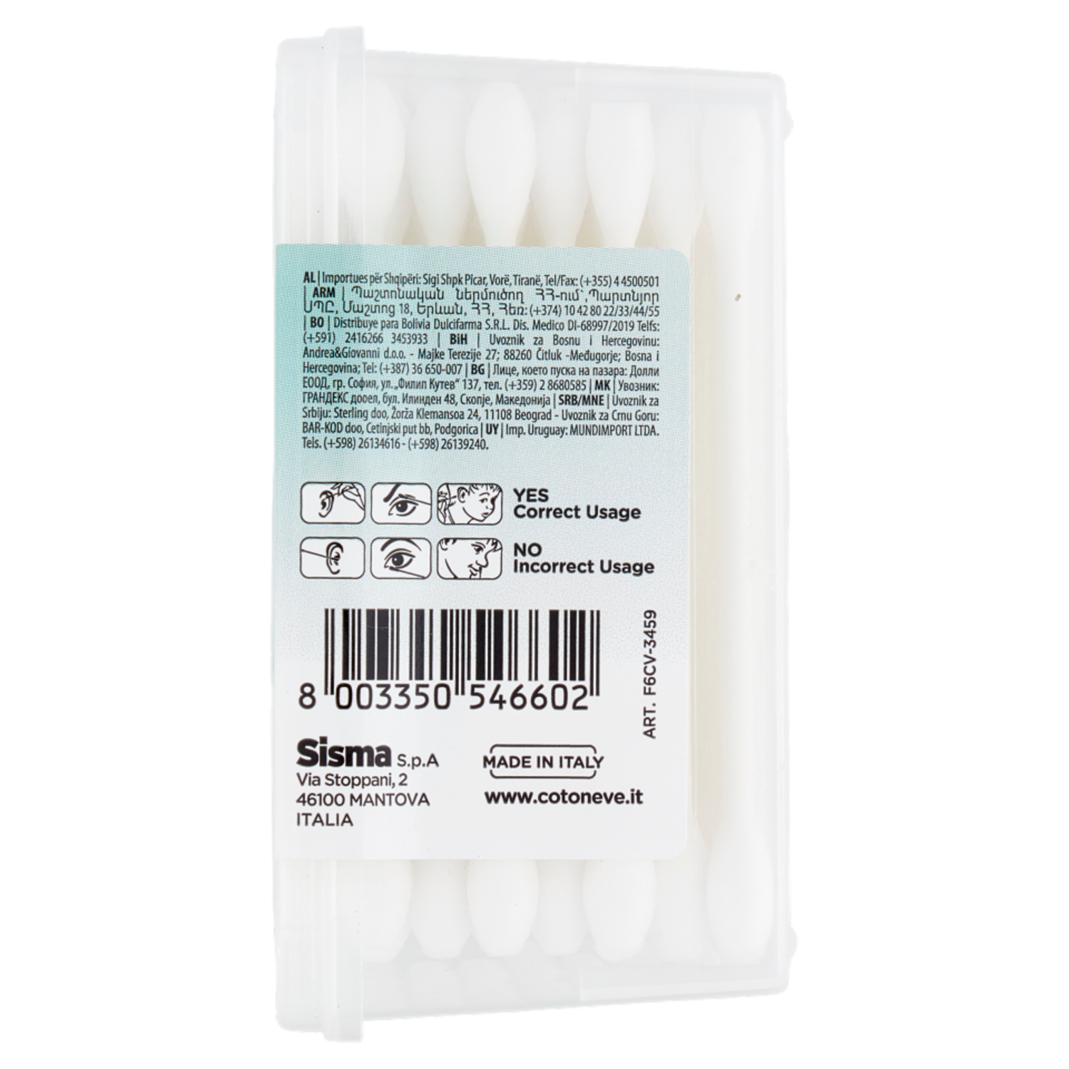 Avvertenze: Non usare per la pulizia interna del naso, rima palpebrale e co ndotto uditivo esterno. Un uso improprio può provocare lesioni traumatiche infezioni dell'orecchio.