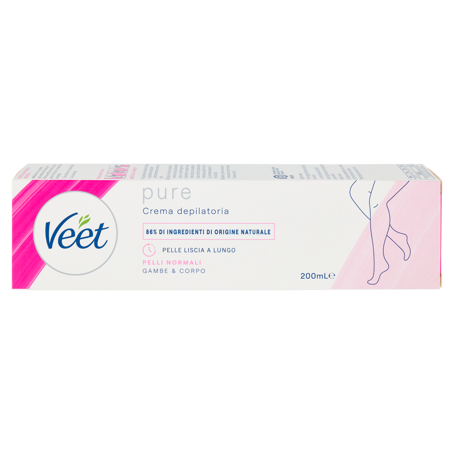 Scopri la crema Veet Pure: La nostra formula più pura, con un numero ridotto di ingredienti*, ideata per donarti una pelle liscia a lungo. Il nostro odore più puro: senza odore di ammoniaca. *con minor numero di ingredienti rispetto a tutte le precedenti formule di Creme Veet Dermatologicamente testato