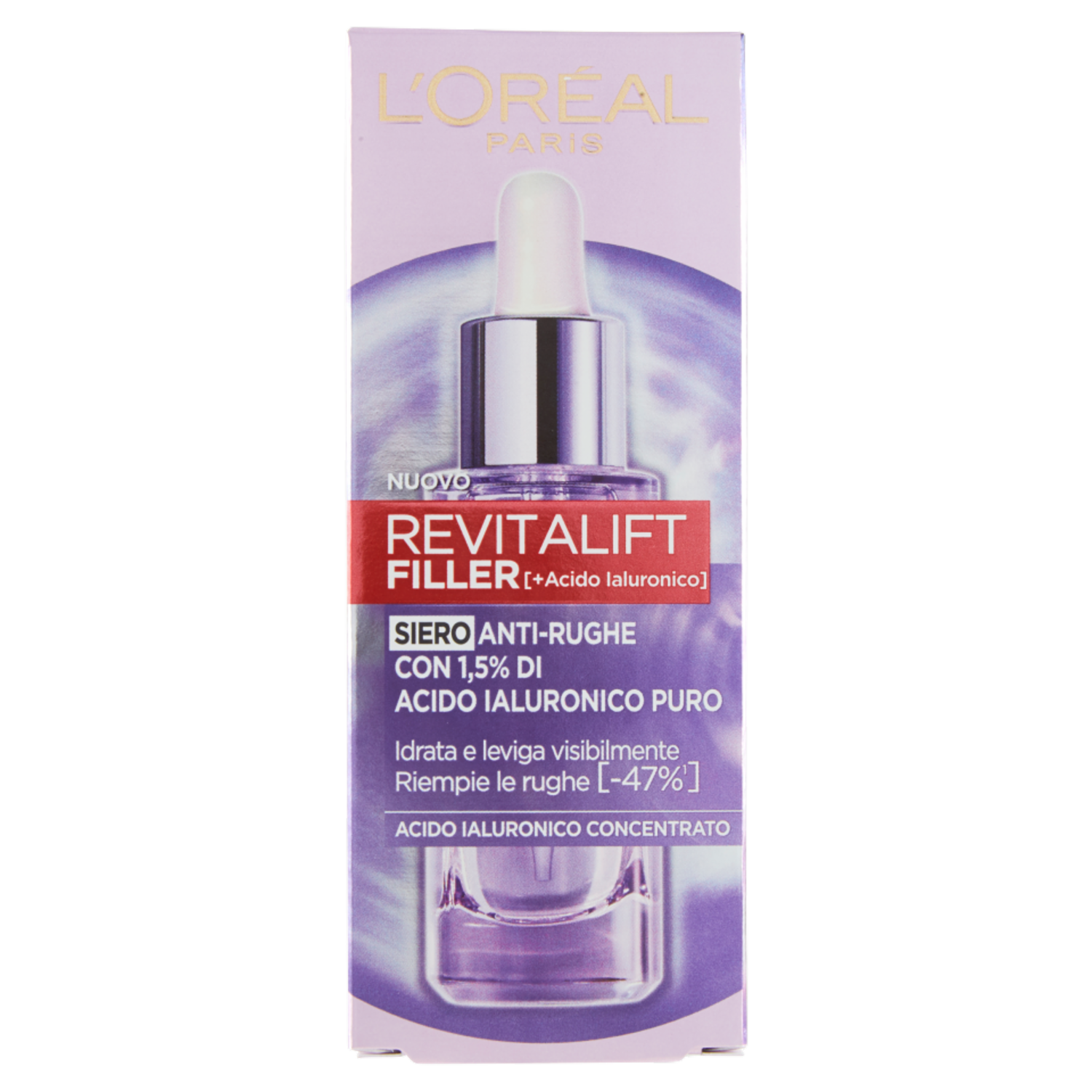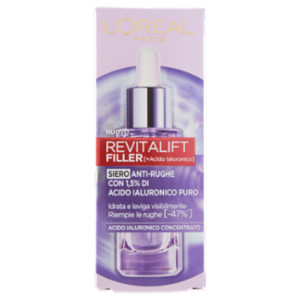 Il siero in pipetta Filler è arricchito di 1,5% di acido ialuronico. Uno shot ultra concentrato di acido ialuronico per riempire tutti i tipi di rughe, reidratando istantaneamente e rendendo la pelle visibilmente più liscia. Risultato: -47% di rughe in 6 settimane *Punteggio clinico- 53 donne