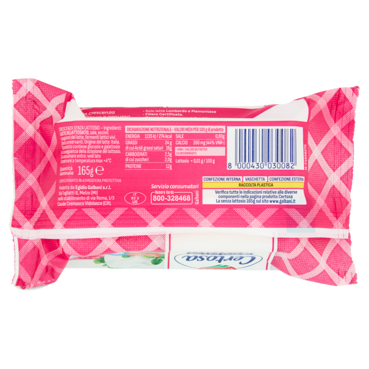 Prodotto da Egidio Galbani S.r.l. Via Flavio Gioia, 8 20149 Milano (MI) nello stabilimento di Via Roma, 1/3 Casale Cremasco Vidolasco (CR)