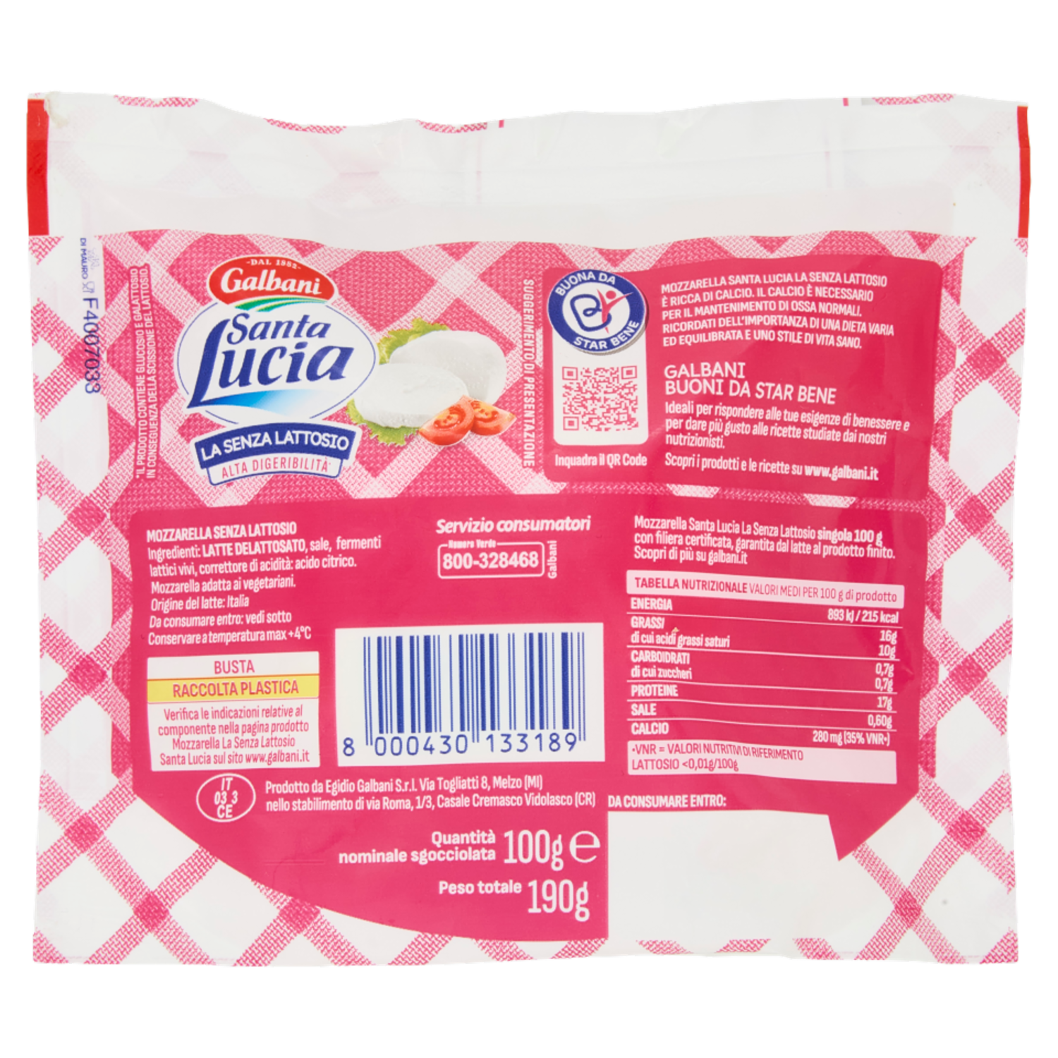 Servizio Consumatori Galbani Numero Verde 800-328468 Egidio Galbani S.r.l. Via Flavio Gioia, 8 20149 Milano (MI)