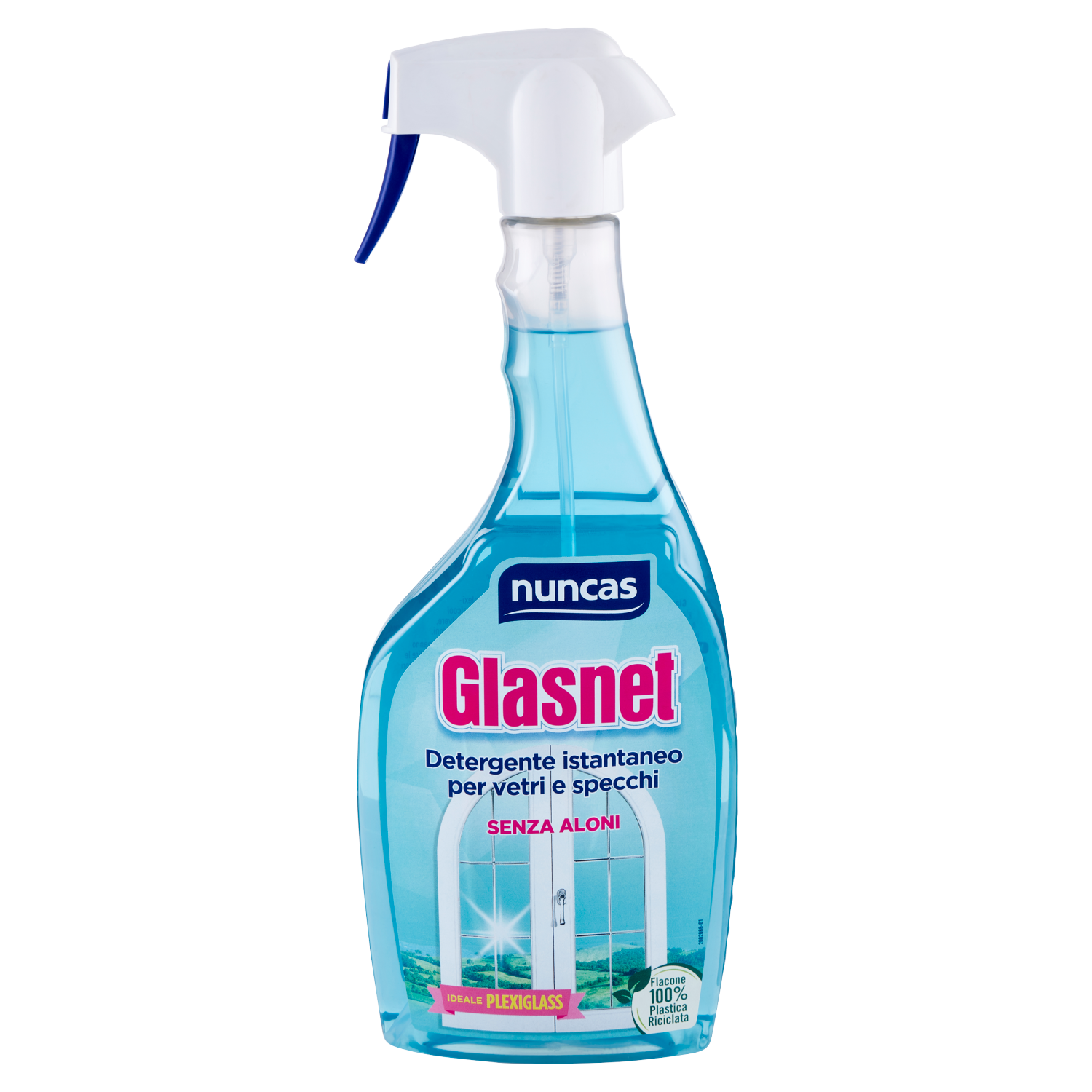 Con Glasnet i vetri risplenderanno in un attimo per un risultato impeccabile e senza eguali. Glasnet è il detergente specifico per la pulizia di vetri, specchi e plexiglass. La sua formula unisce la capacità sgrassante e igienizzante di alcool e ammoniaca al potere pulente dei tensioattivi e rimuove con facilità polvere, impronte, segni di insetti, fuliggine, smog e gocce di pioggia, senza lasciare aloni.
