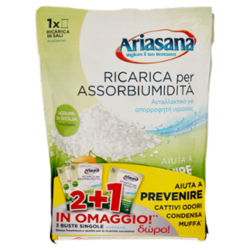 L'umidità in eccesso può essere causa di muffe, cattivi odori, macchie e condensa. I cristalli ad alto assorbimento di Ariasana sono la soluzione ideale grazie alla loro efficace azione. Assorbendo l'umidità in eccesso,ristabiliscono il giusto equilibrio nell'ambiente, migliorando la qualità dell'aria. Gli speciali cristalli ad alto assorbimento funzionano senza l'impiego di alcuna fonte energetica. 3-in-1 1 Assorbe l'umidità in eccesso 2 Elimina i cattivi odori 3 Profuma l'ambiente Dove usarlo? Salotto - Cucina - Bagno - Camper - Cantina