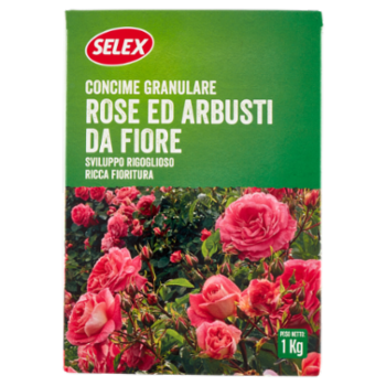 Il Concime Granulare Rose e arbusti da fiore Selex è appositamente studiato e ampiamente sperimentato per conferire alle rose e alle altre arbustive fiorite, sia cespugliose che alberelli o rampicanti, tutte le sostanze nutritive, opportunamente equilibrate, necessarie per un ottimo sviluppo e per una stupenda fioritura. Indicato anche per piante fiorite quali Gerani, Petunie, Surfinie, Bulbi da fiore e Ciclamini.