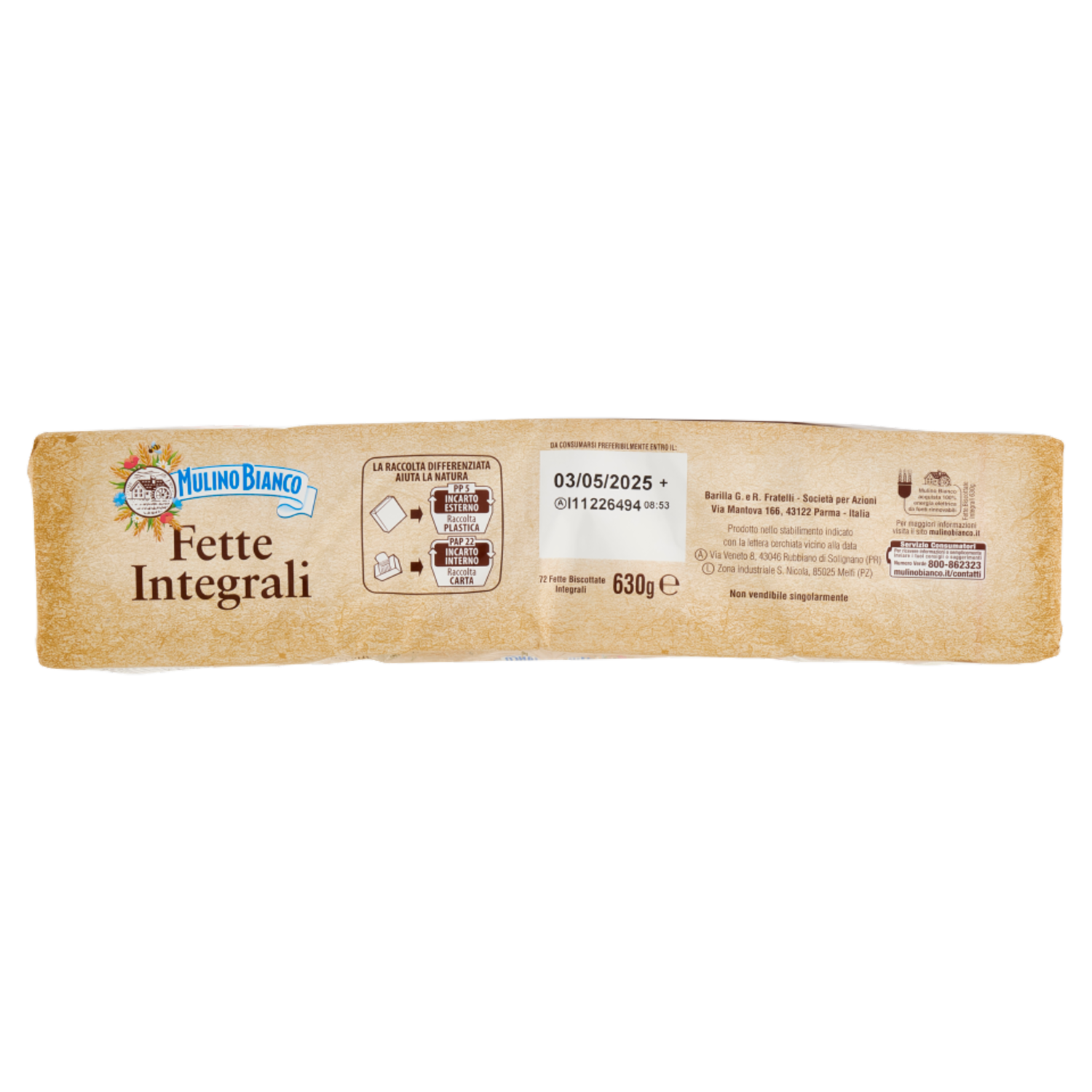 La nota croccante del risveglio La consistenza rustica, il rito della spalmata e il suono croccante delle fette, il profumo del tè caldo, la dolcezza del miele. A colazione prenditi il tuo tempo, risveglia i tuoi sensi con le fette biscottate. Provala con crema di pistacchi Scopri tutte le ricette e lasciati ispirare mulinobianco.it/ricette Le Fette Integrali Mulino Bianco offrono una nuova croccantezza e i benefici della farina integrale con crusca a foglia larga, per una colazione ancora più buona. Le Fette Integrali sono preparate solo con farina integrale di frumento, senza usare altri tipi di farine. Variare spesso i cibi e seguire uno stile di vita fisicamente attivo è il modo giusto per avere una vita sana.