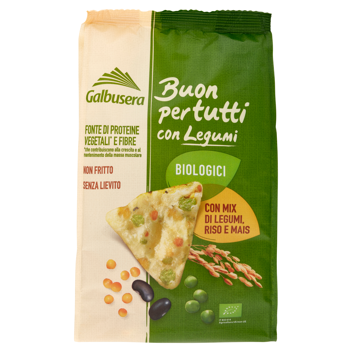 Ideali come "spezza-fame", buonissime come aperitivo o per accompagnare il pranzo e la cena. Buonpertutti Bio: cracker e gallette ricchi di ingredienti preziosi provenienti da agricoltura biologica, un metodo di coltivazione che ha come obiettivo il rispetto dell'ambiente, degli equilibri naturali e della biodiversità. Il percorso salute Galbusera Garantiamo sempre Ricette studiate per un'alimentazione equilibrata. Oli e grassi non idrogenati*, alta qualità materie prime. No olio di palma, conservanti e coloranti*. *Come previsto dalla normativa dei prodotti biologici. Naturalmente Fonte di Proteine Vegetali che contribuiscono alla crescita e al mantenimento della massa muscolare. Un'alimentazione equilibrata ed una corretta attività fisica ti aiutano ad avere una vita sana.