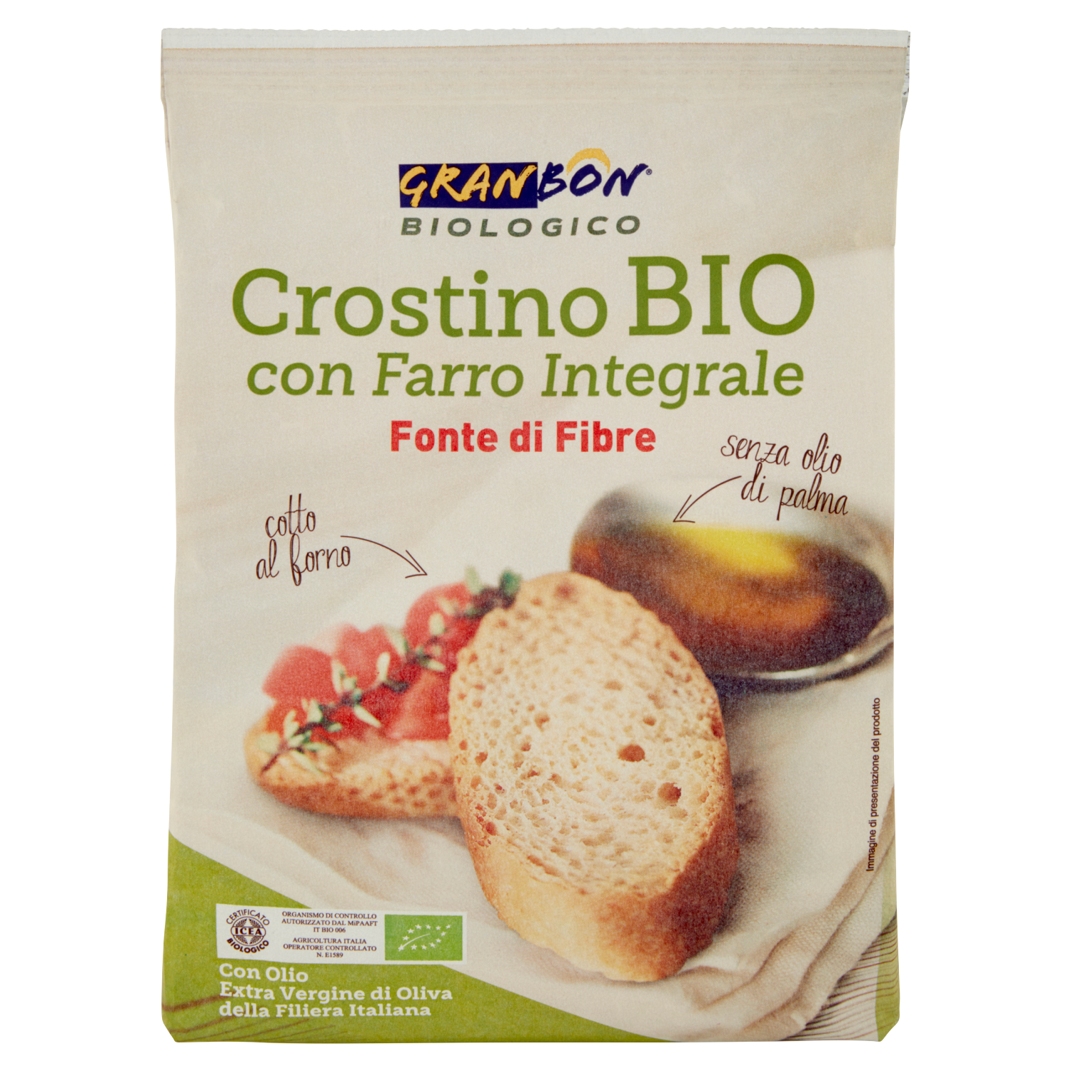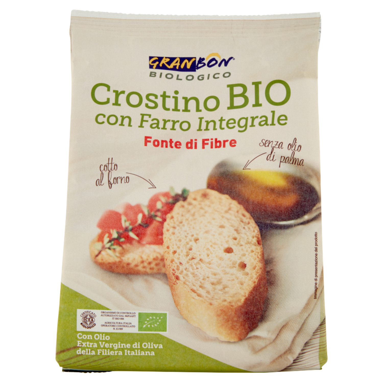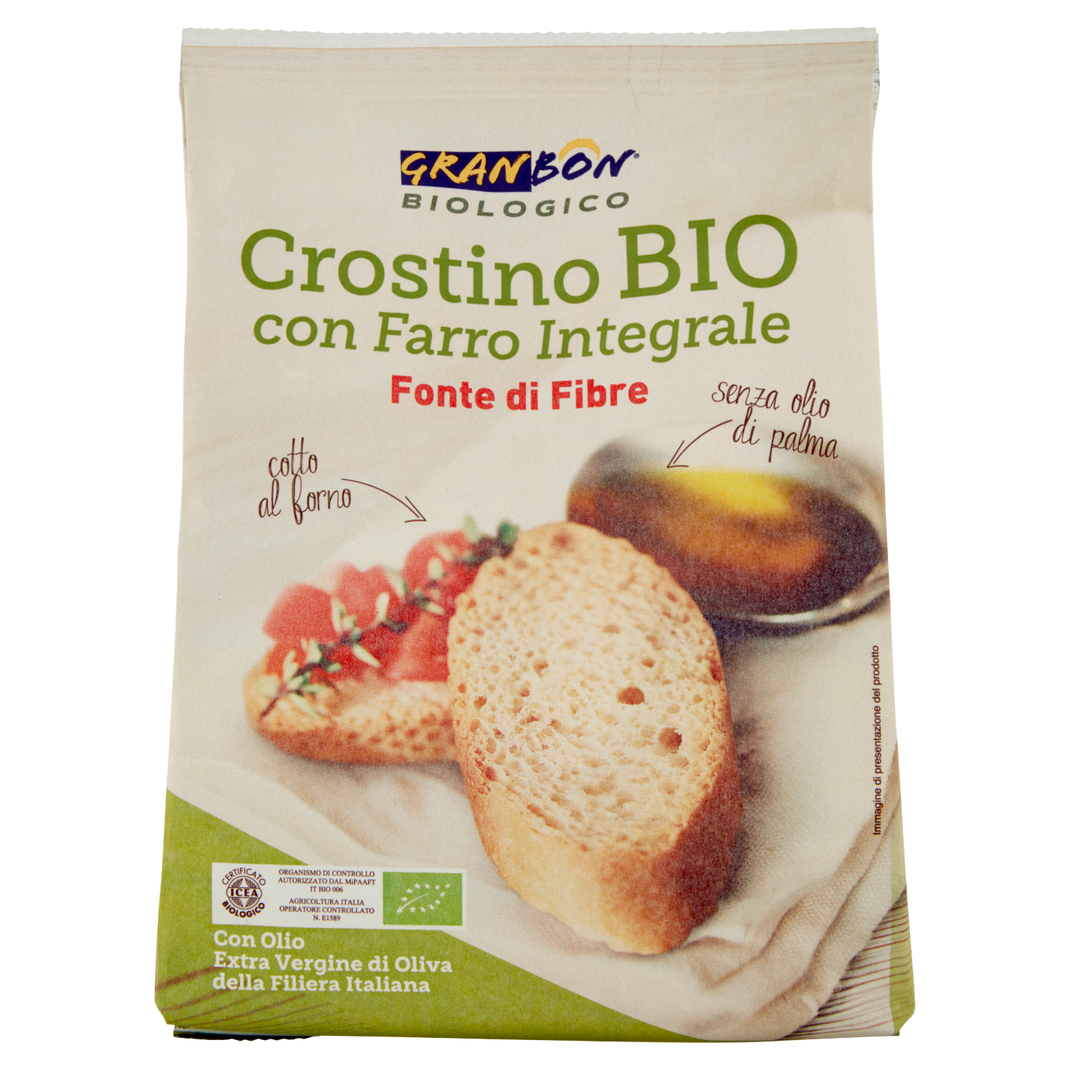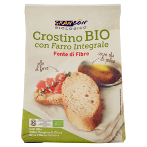 Crostino biologico con farina di farro integrale e olio extra vergine di oliva 10% Prodotto da forno con olio extra vergine di oliva 10%