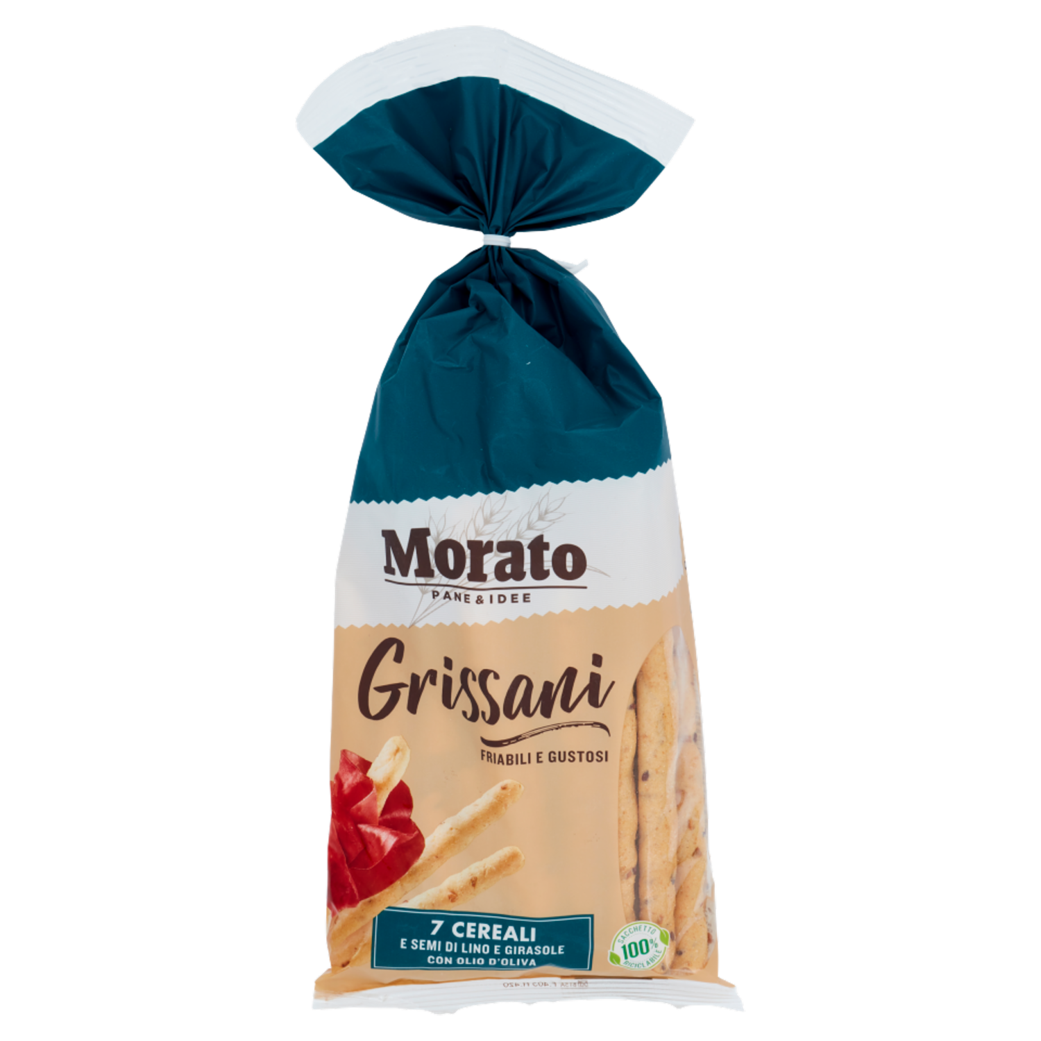 Grissini friabili e gustosi, che uniscono il sapore delicato dell'olio d'oliva alla qualità unica del mix di 7 cereali e semi di girasole e lino. Lasciati stupire dal loro gusto unico e dalla straordinaria croccantezza Con semi di lino e girasole Per un gusto ancora più croccante Farina di 7 cereali Grano tenero, farro, riso, mais, segale, avena e orzo Friabili e gustosi