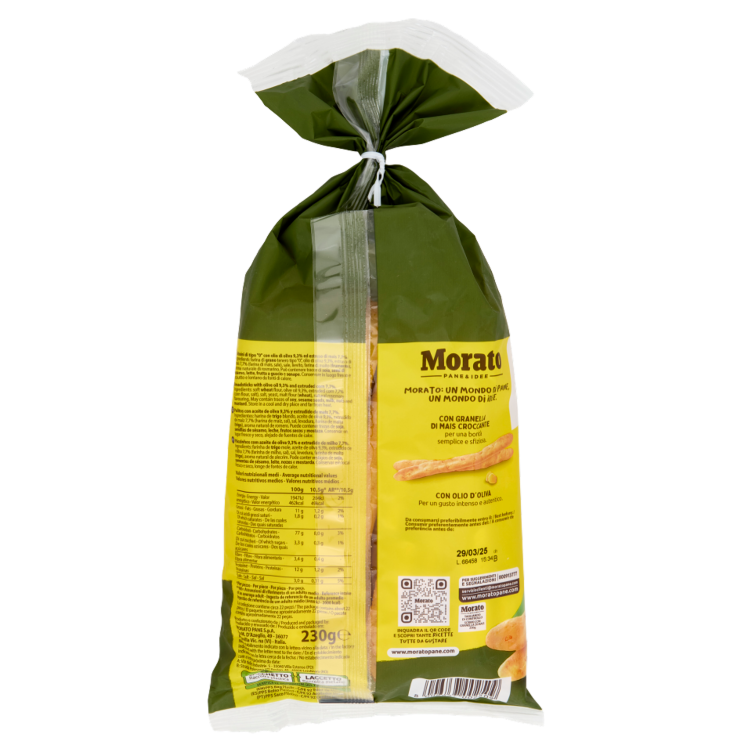 Prodotto e confezionato da: Morato Pane S.p.A. Via M. D'Azeglio, 49 36077 Altavilla Vic. na (VI) Italia Nello stabilimento indicato con la lettera vicino alla data: A: Via delle Industrie, 5 - 35040 Villa Estense (PD) B: Strada Polesana per Rovigo, 40 - 45026 Lendinara (RO)