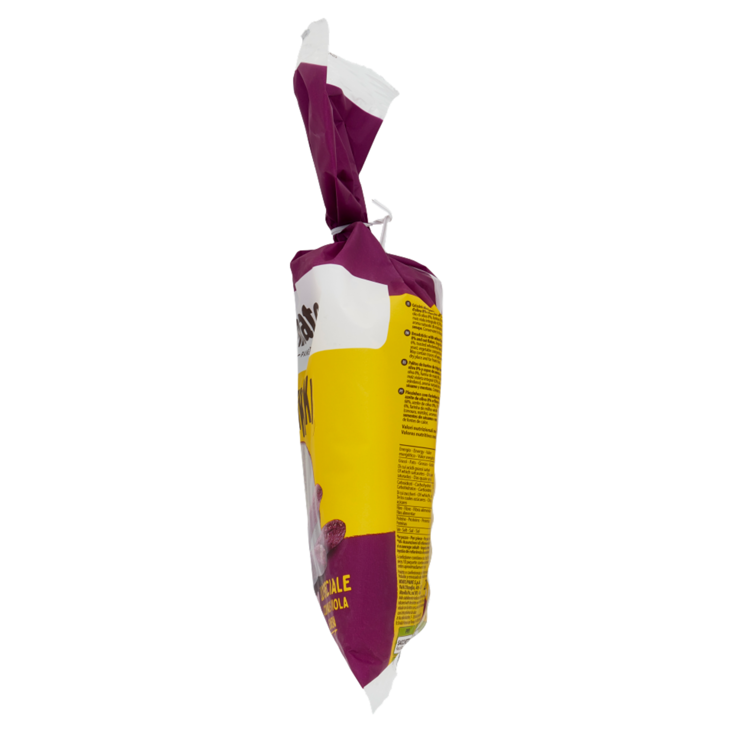 Con mais viola Chiamato anche Maiz Morado, nasce da una varietà antica di pannocchia naturalmente colorata, grazie alla presenza di nutrienti che conferiscono ai chicchi l'originale colore. Con olio d'oliva Per un gusto intenso e autentico.