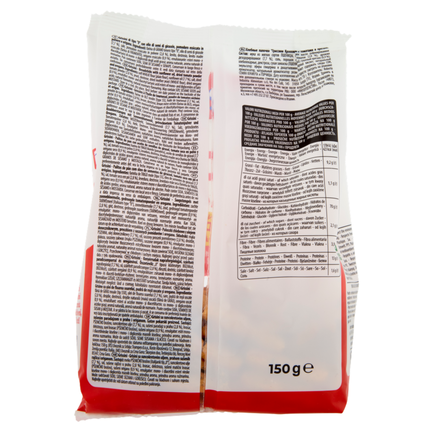 Grissini di tipo "0" con olio di palma, pomodoro e origano