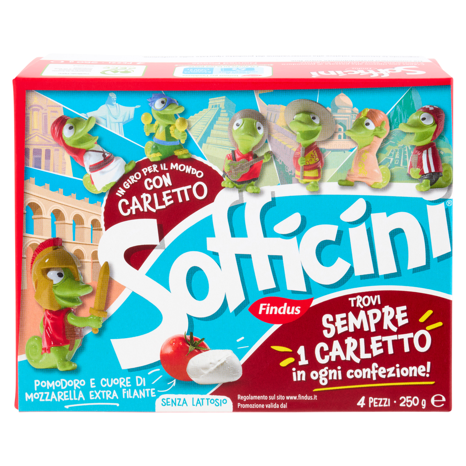 Ripieno vibrante, gusto roboante! Fatti venire l'acquolina in bocca con il gusto del pomodoro più un cuore di mozzarella filante senza lattosio! Prova questo e anche gli altri mitici gusti Sofficini! *